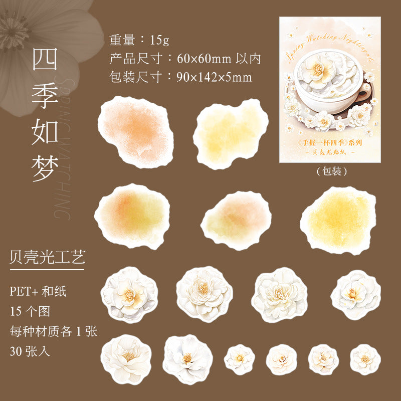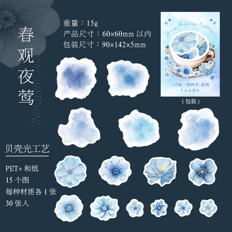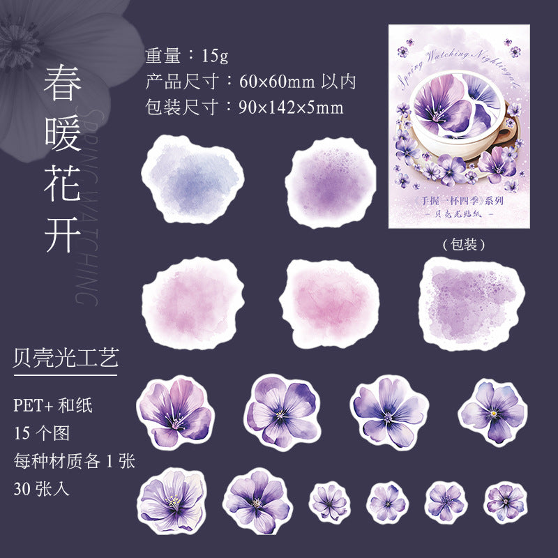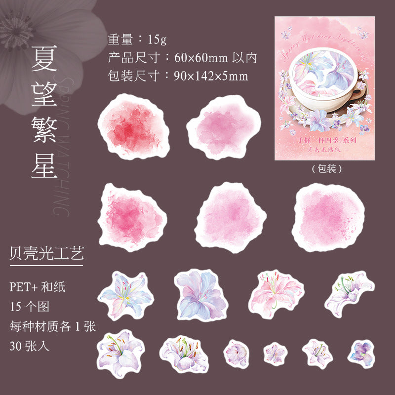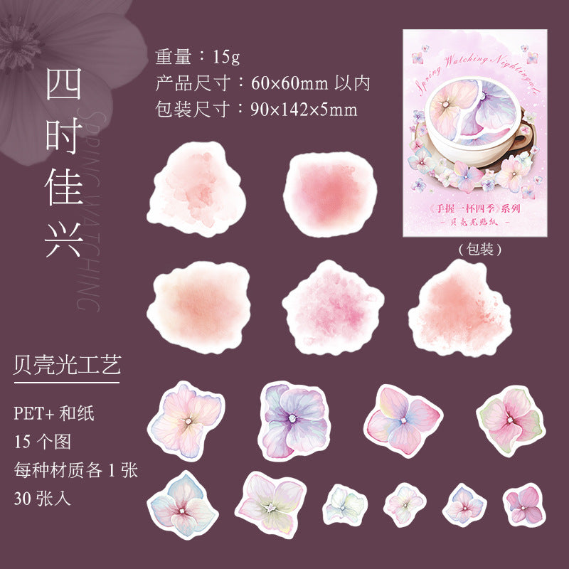 30 Pcs Watercolor Flower Stickers SWYBSJ