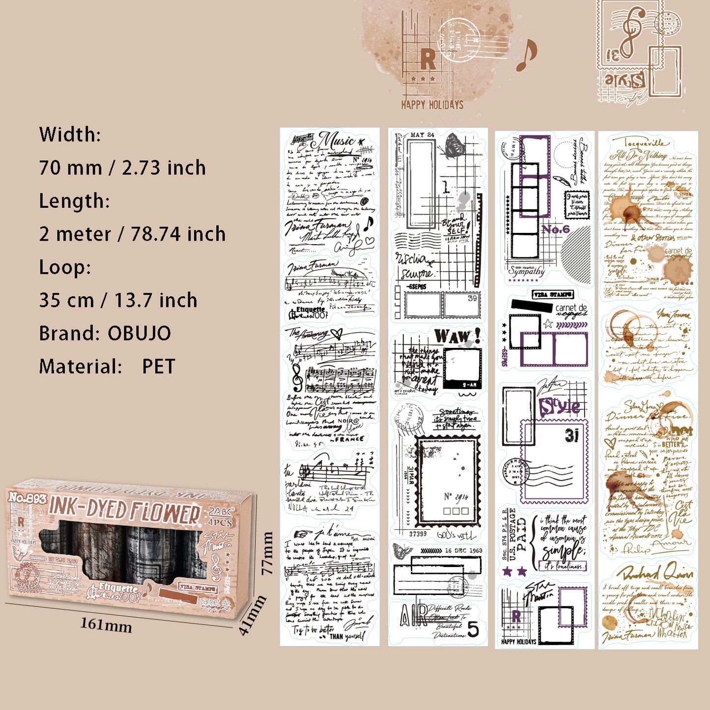 4 Rolls Vintage Letter PET Tapes Set SXWS