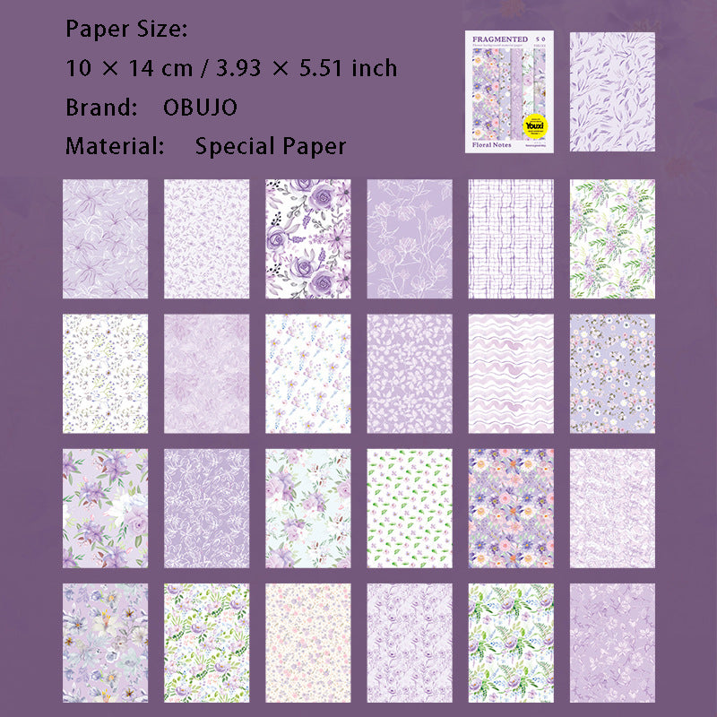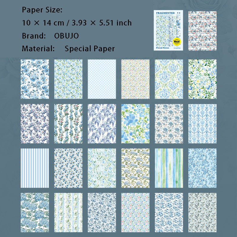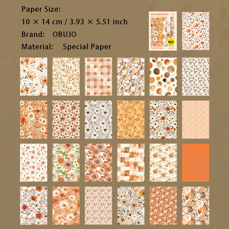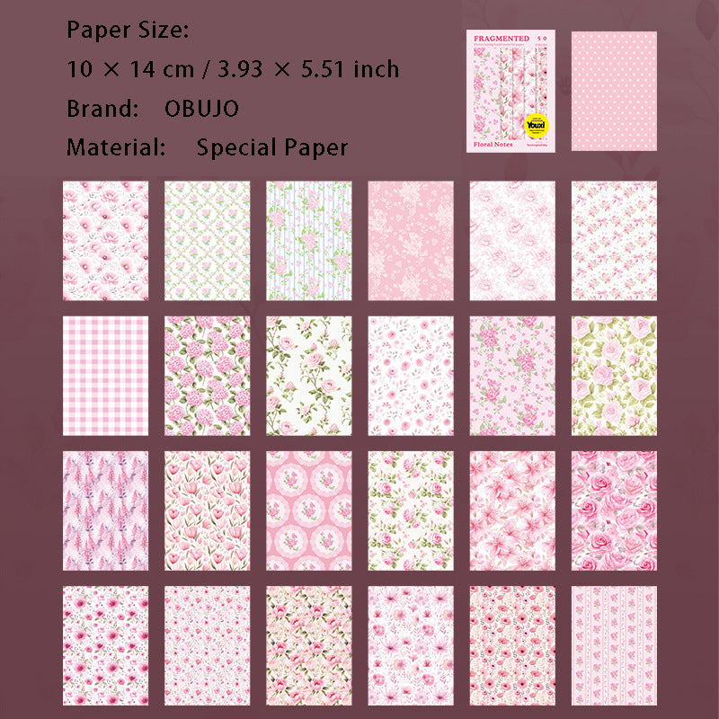 50 Pcs Floral Scrapbook Paper SHXZ