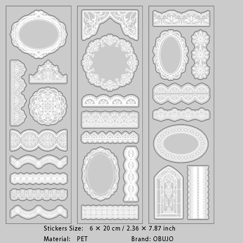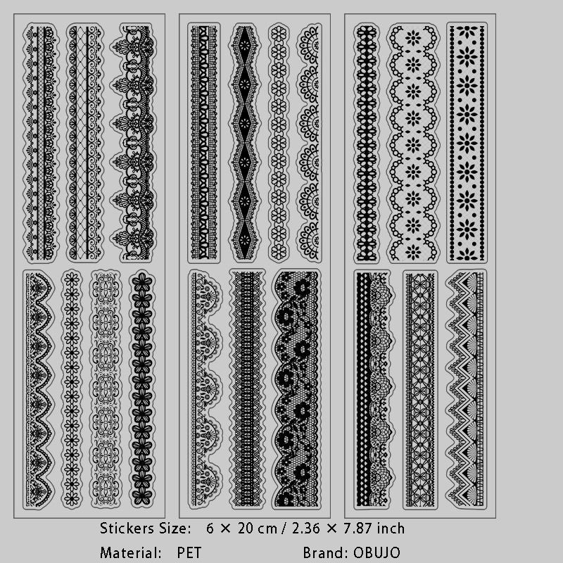 6 Sheets Lace Theme PET Stickers HBLS