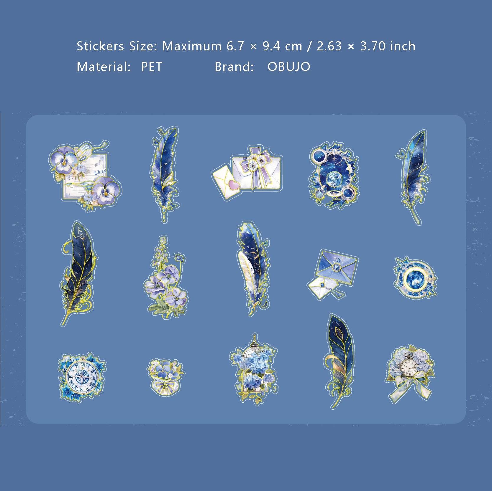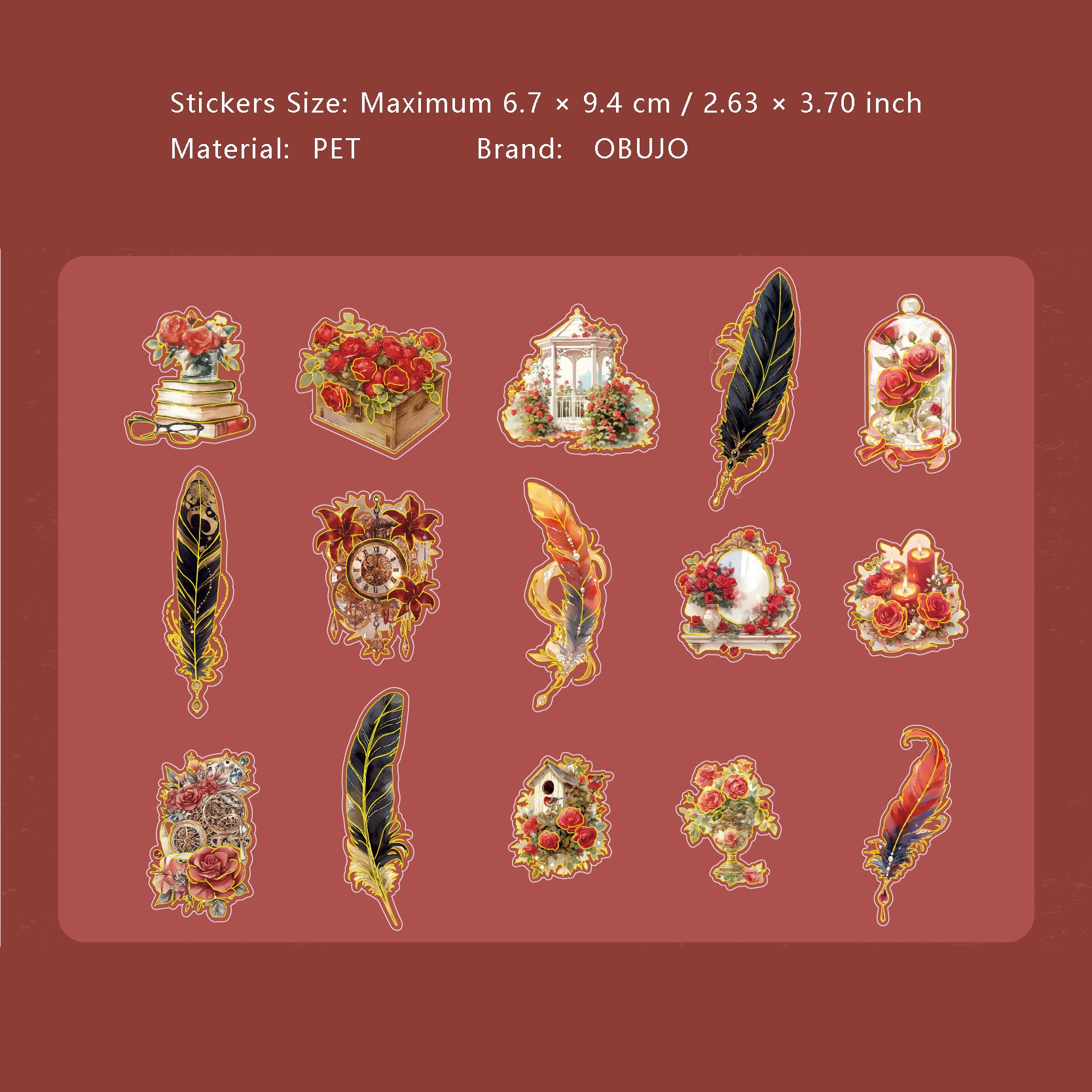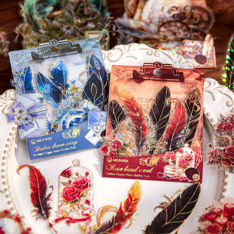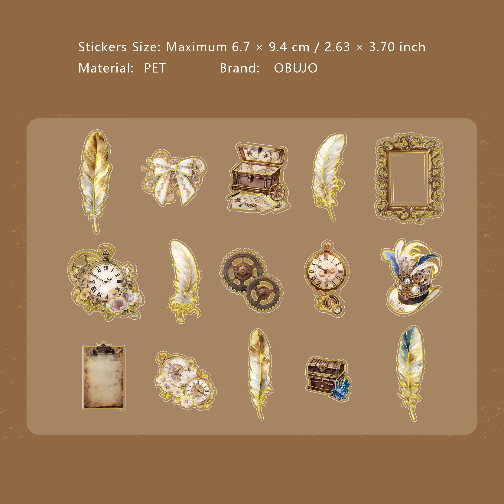 15 Pcs Gold Foil Vintage Feather PET Stickers YYPZ
