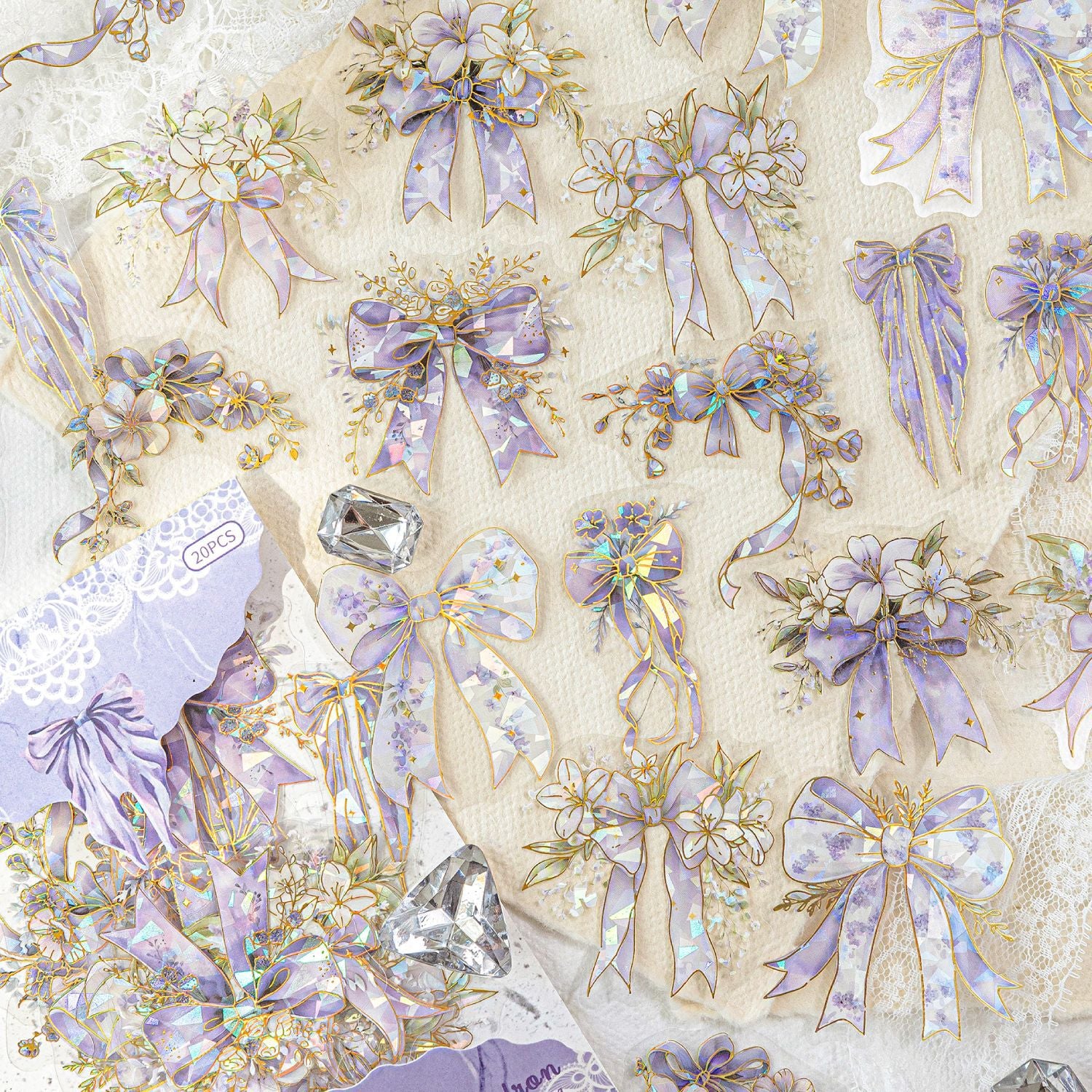 20 Pcs Floral Bow-knot PET Stickers HDJTJ