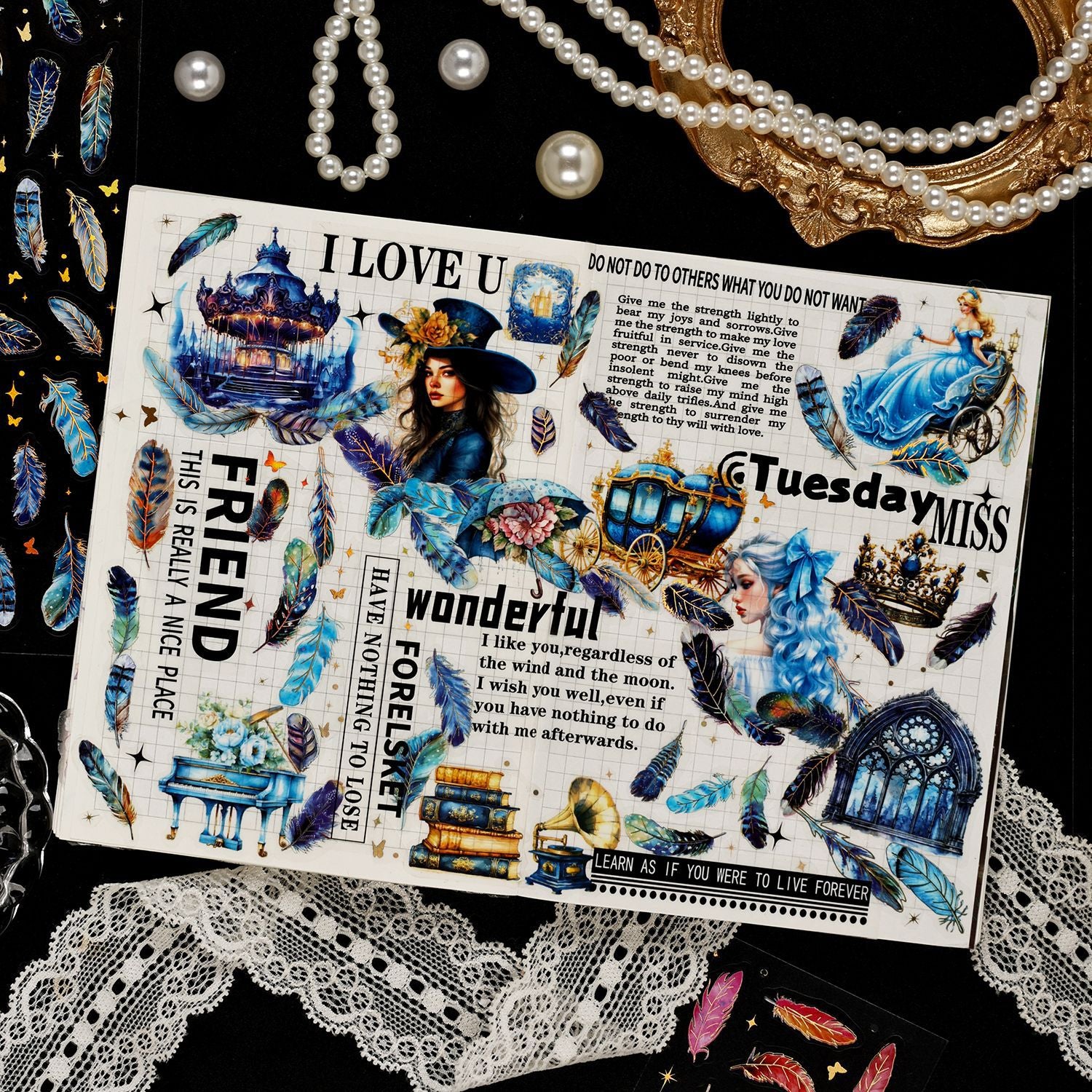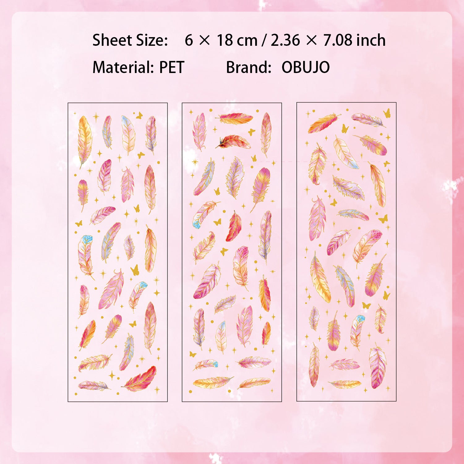 3 Sheets Gold Foil Feather PET Stickers YLWG