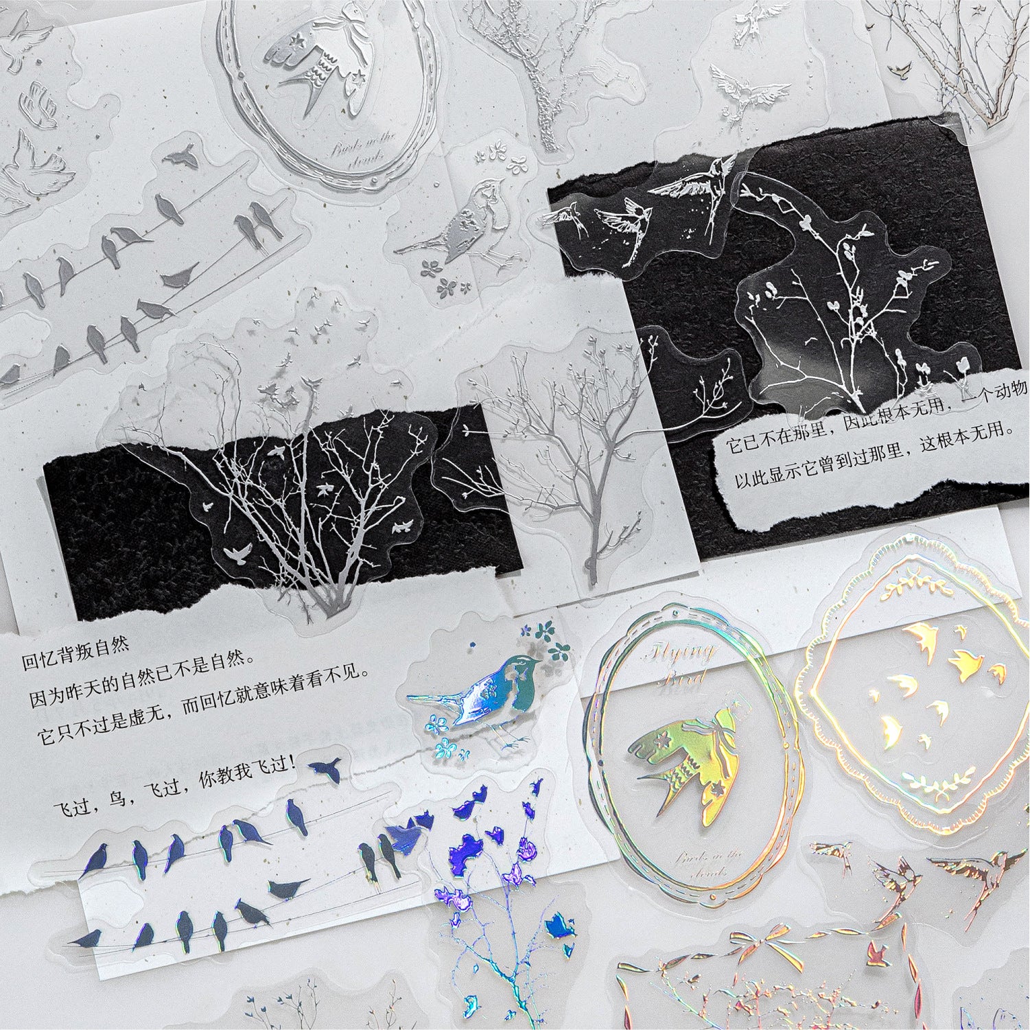 30 Pcs Holographic Silver Botanical PET Stickers YGFM