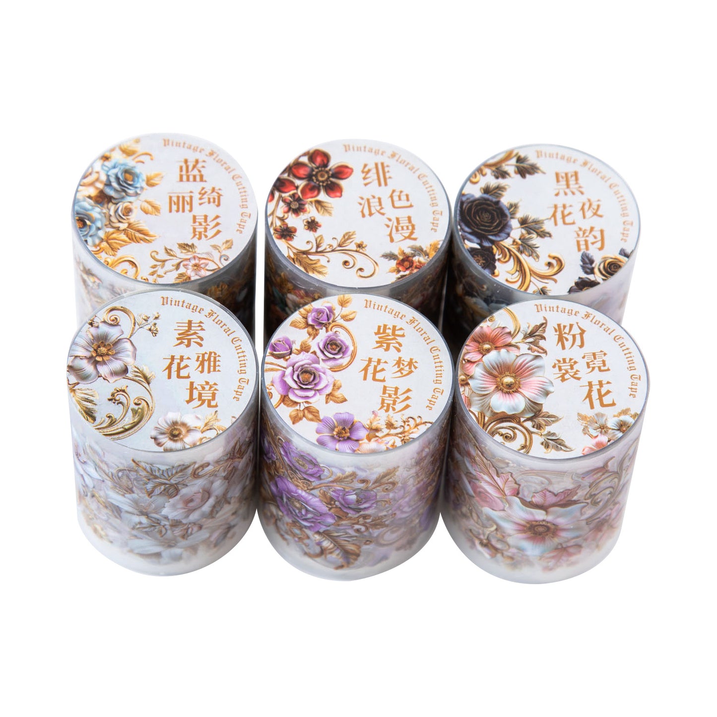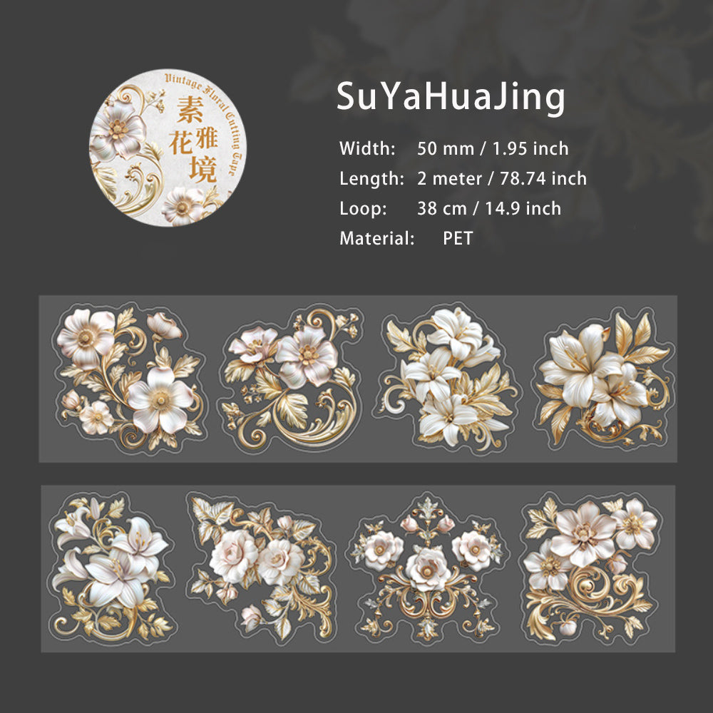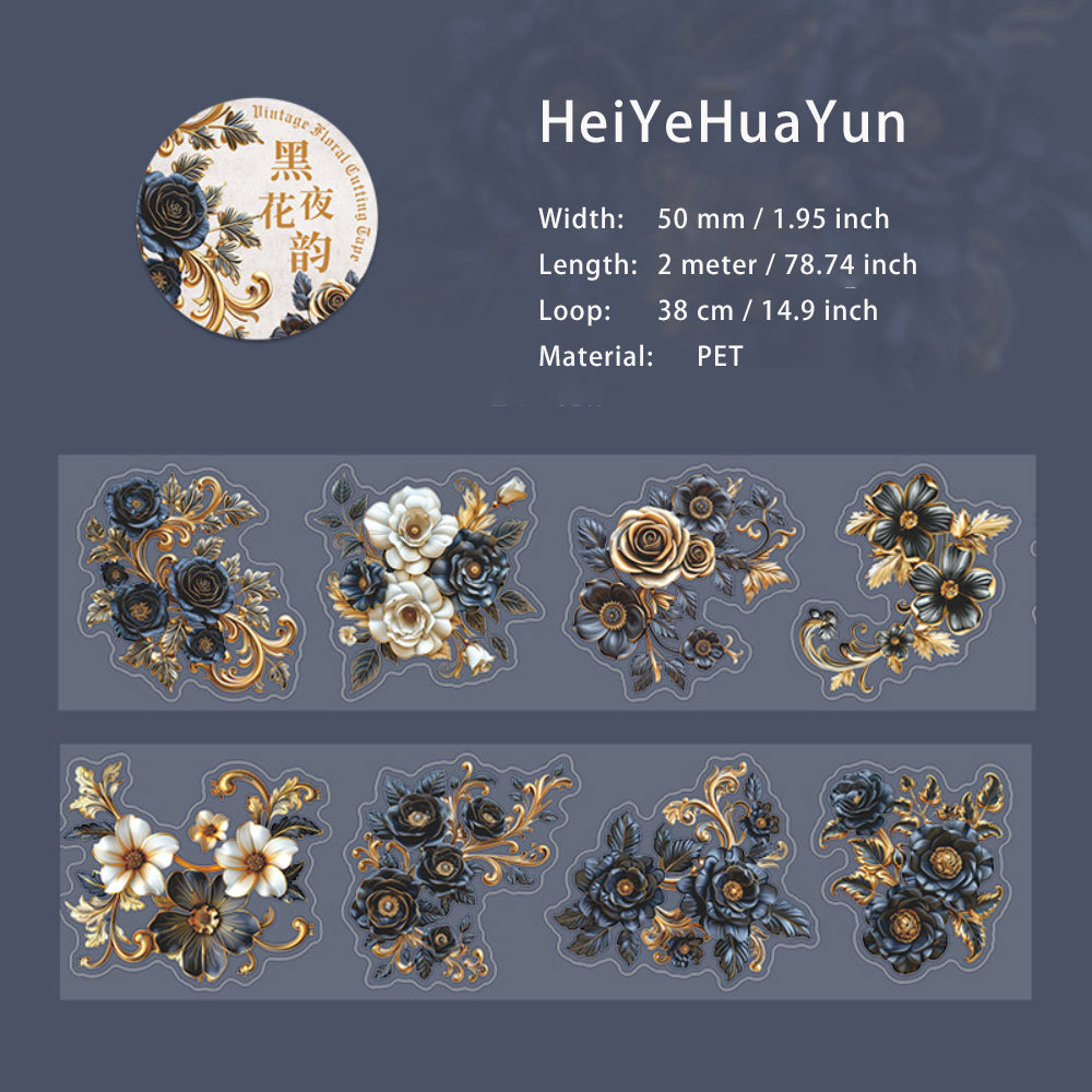 1 Roll Die-cut Baroque PET Flower Stickres Tape BLKHY