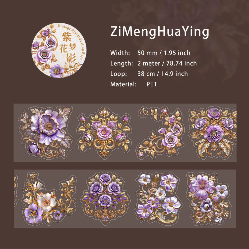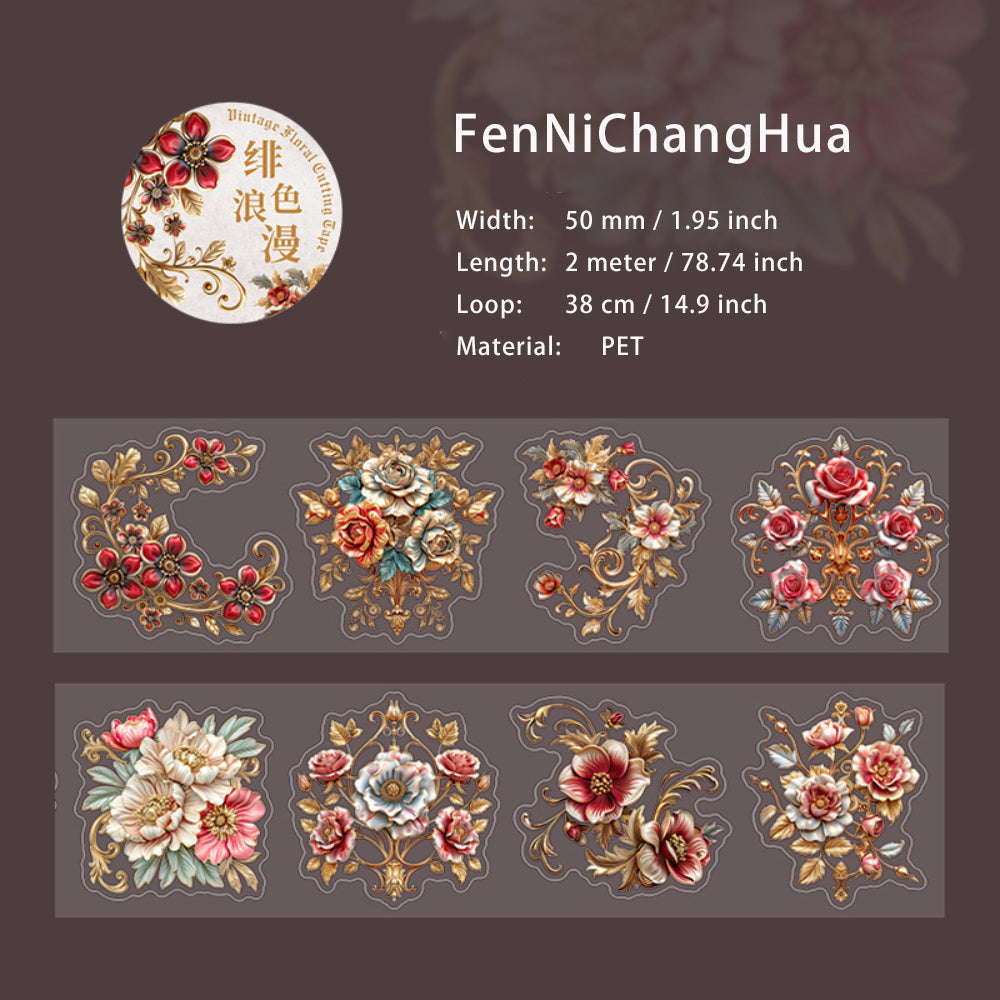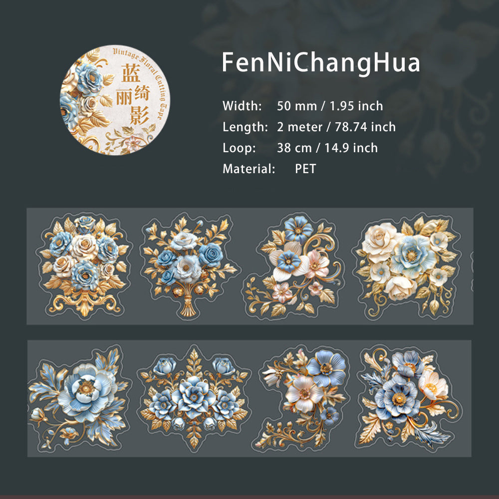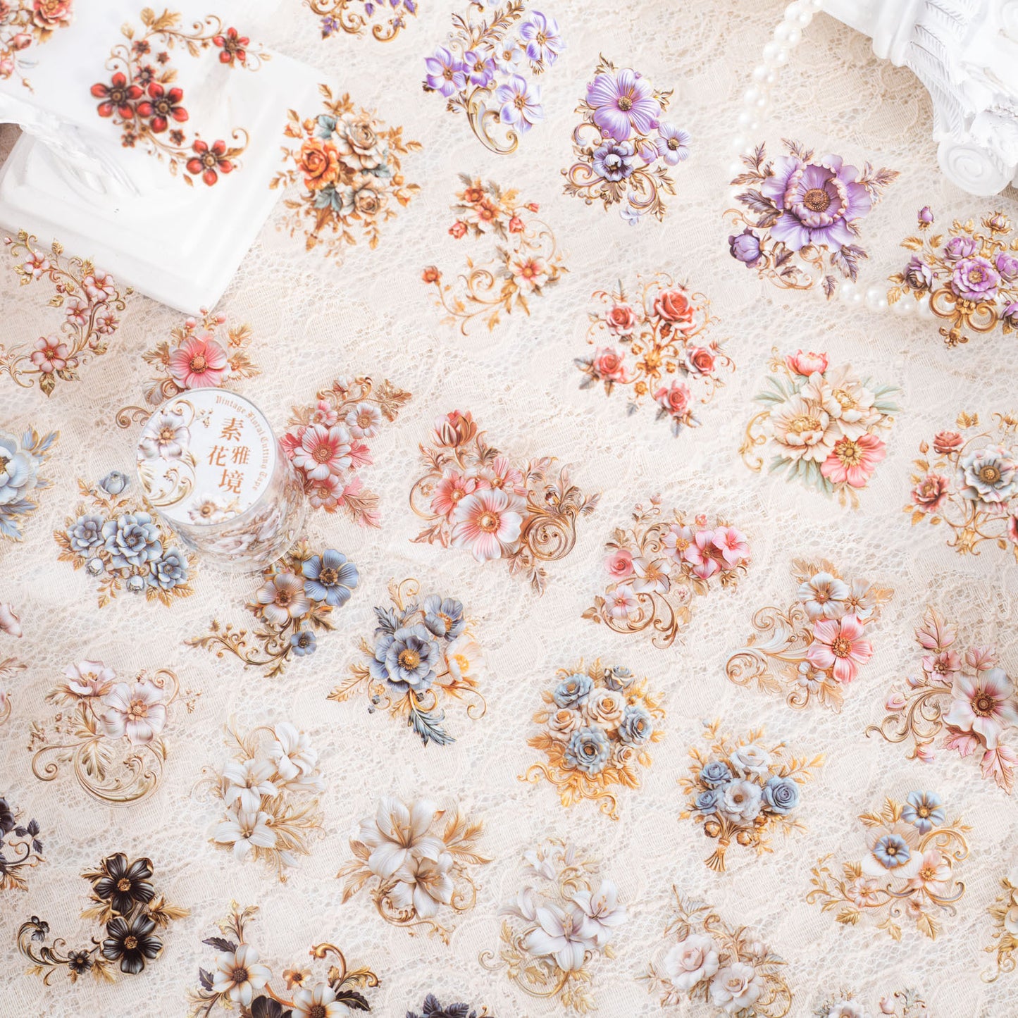 1 Roll Die-cut Baroque PET Flower Stickres Tape BLKHY