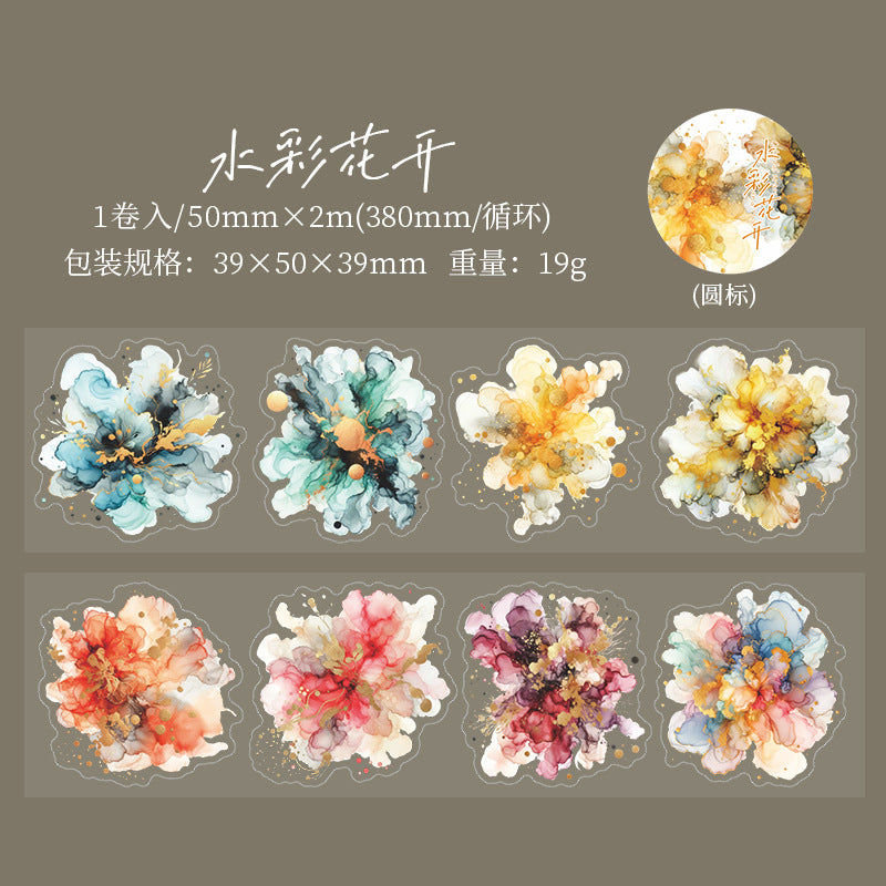 1 Roll Die-Cut Watercolor PET Stickers CRXH