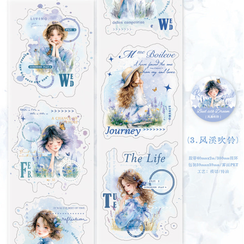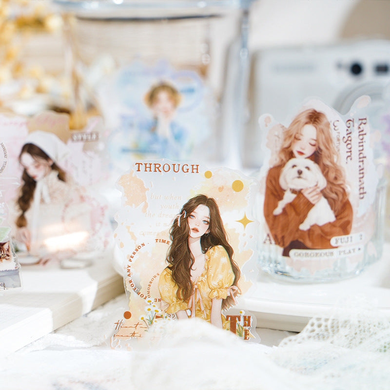 1 Roll Fahsion Girl Die Cut PET Stickers Tape PTLM