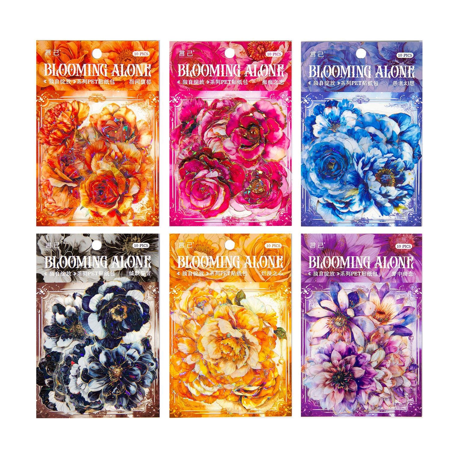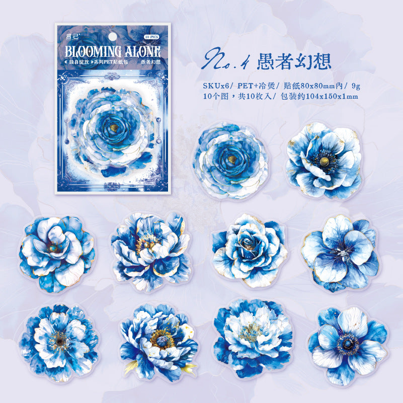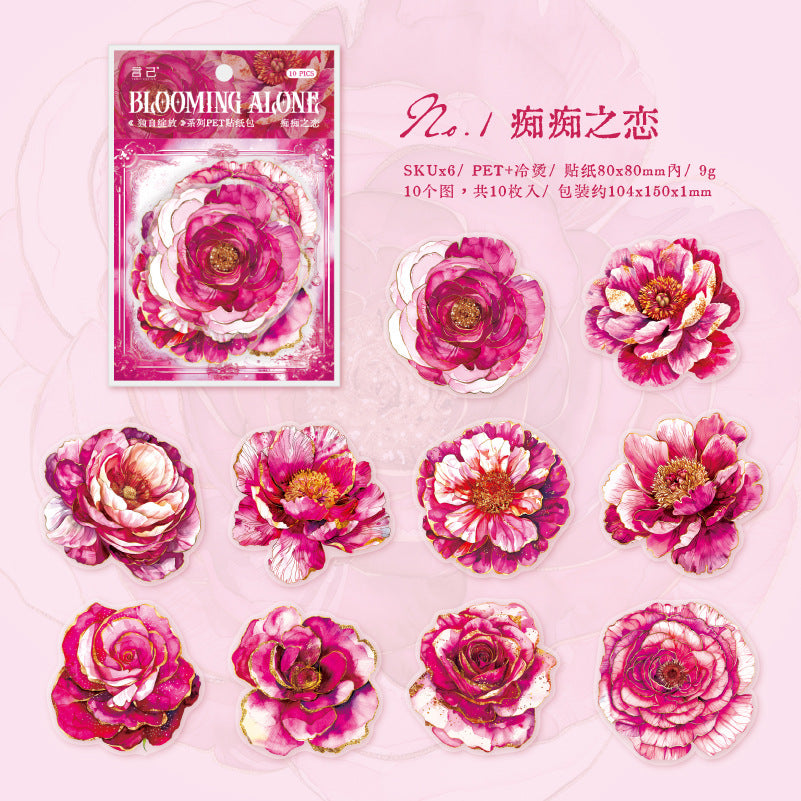 10 Pcs Flowers PET Stickers DZZF