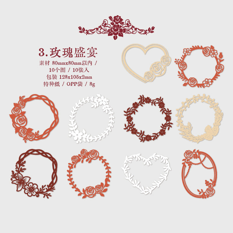 You will get 1 pack of 10 pcs scrapbook supplies from Obujo
