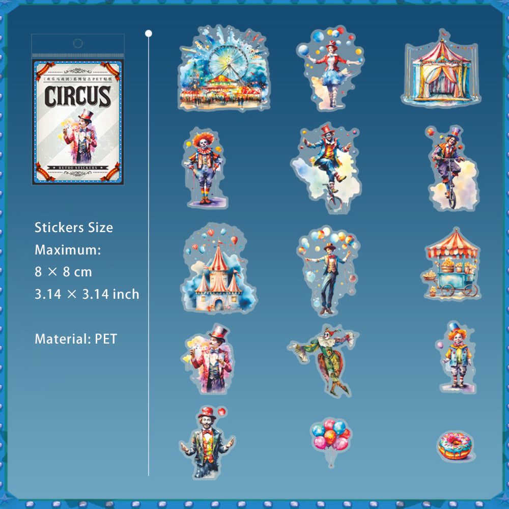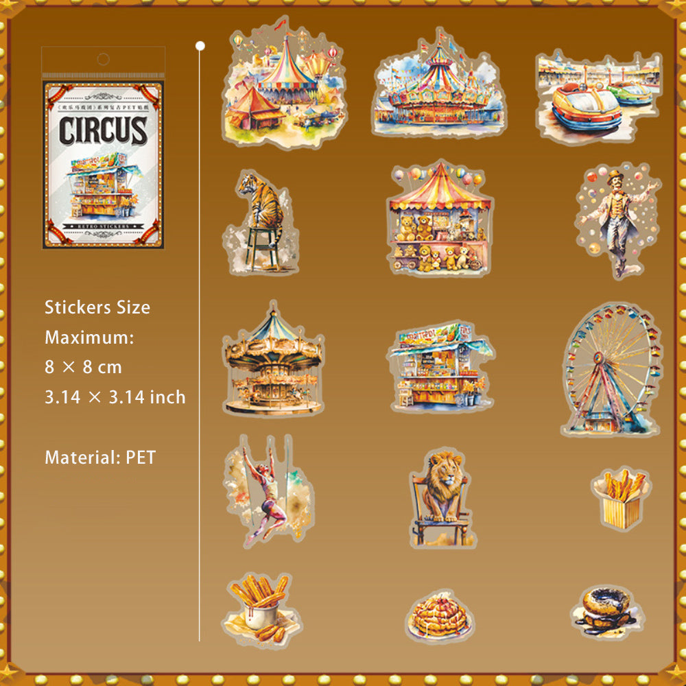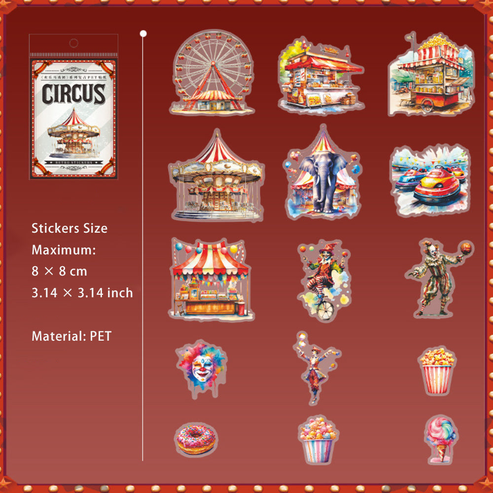 15 Pcs Circus Amusement Park PET Stickers HLMXT