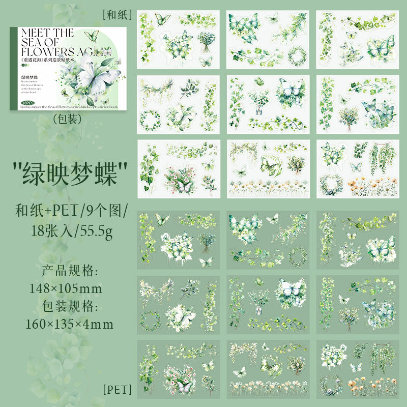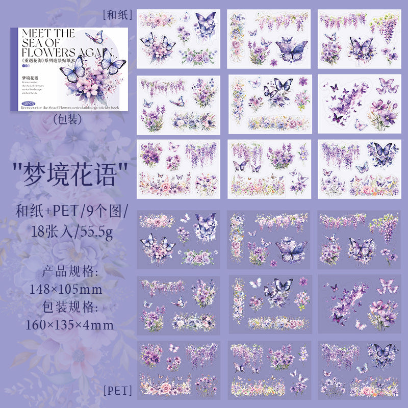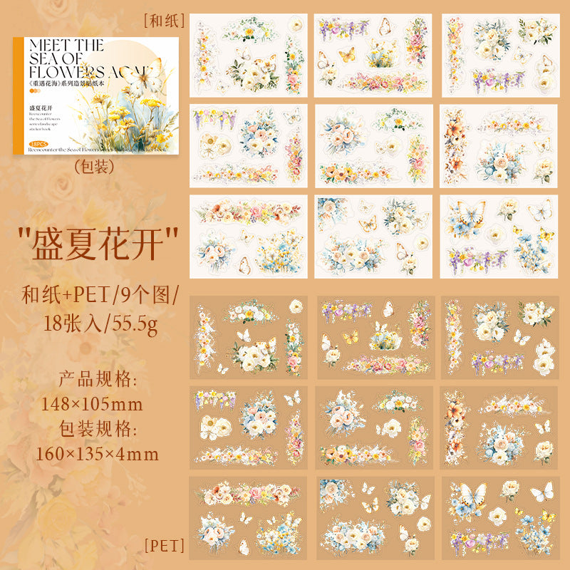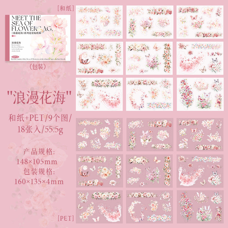 18 Sheets Flower Washi Stickers and PET Stickers CYHH