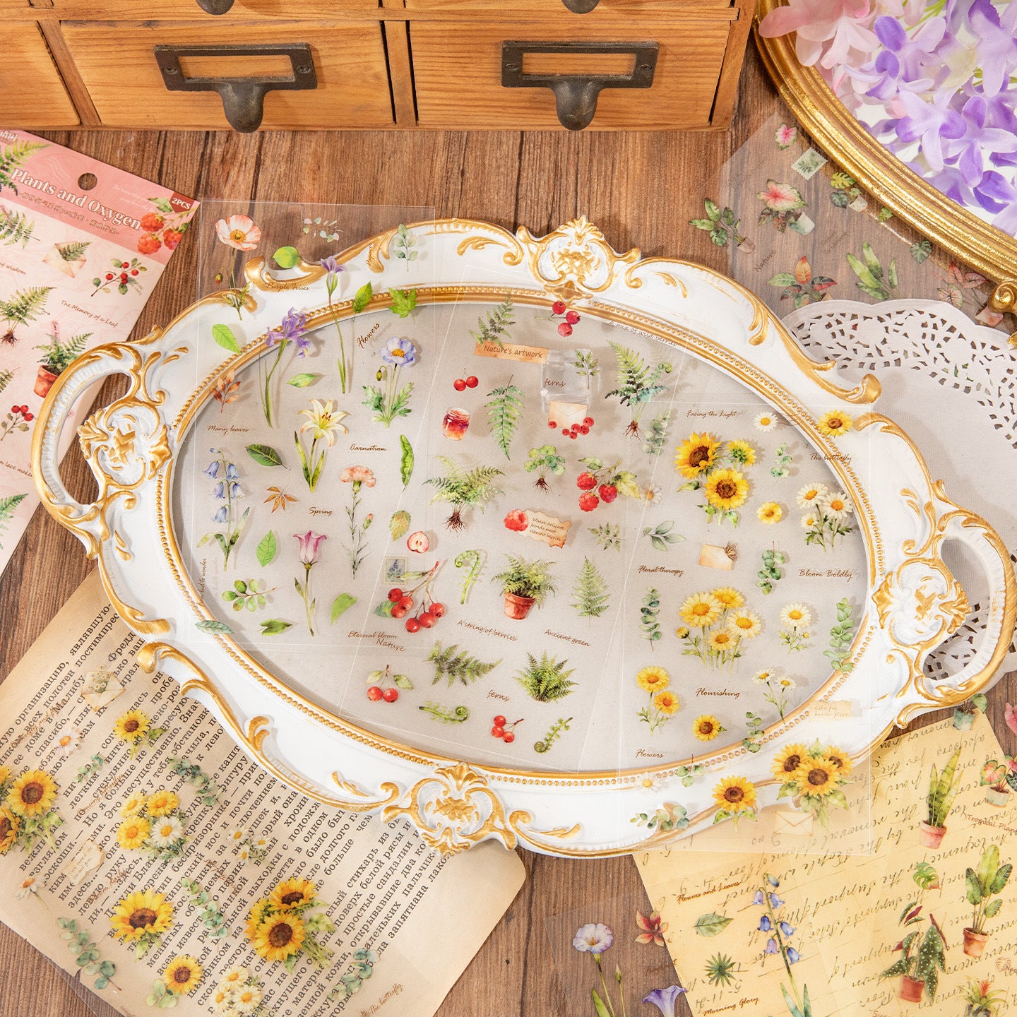 2 Sheets Greent Plant PET Stickers ZWYQ