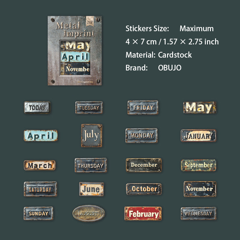 20 Pcs Metal Tag Theme Cardstock Stickers JSYJ