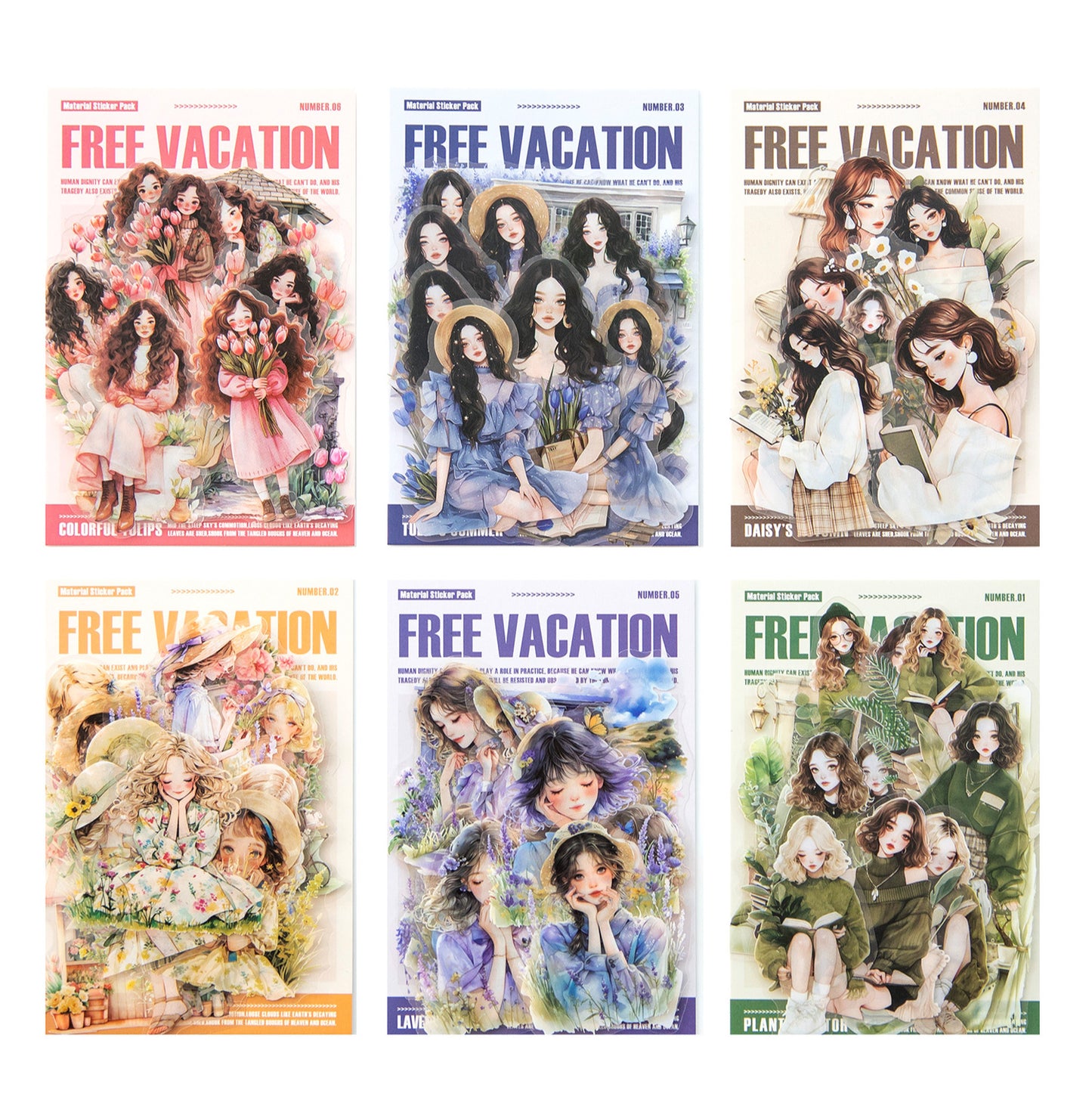30 Pcs Holiday Girl PET Stickers XXJQ