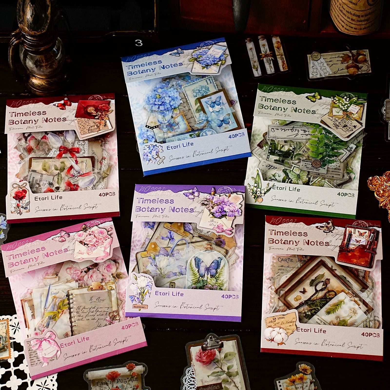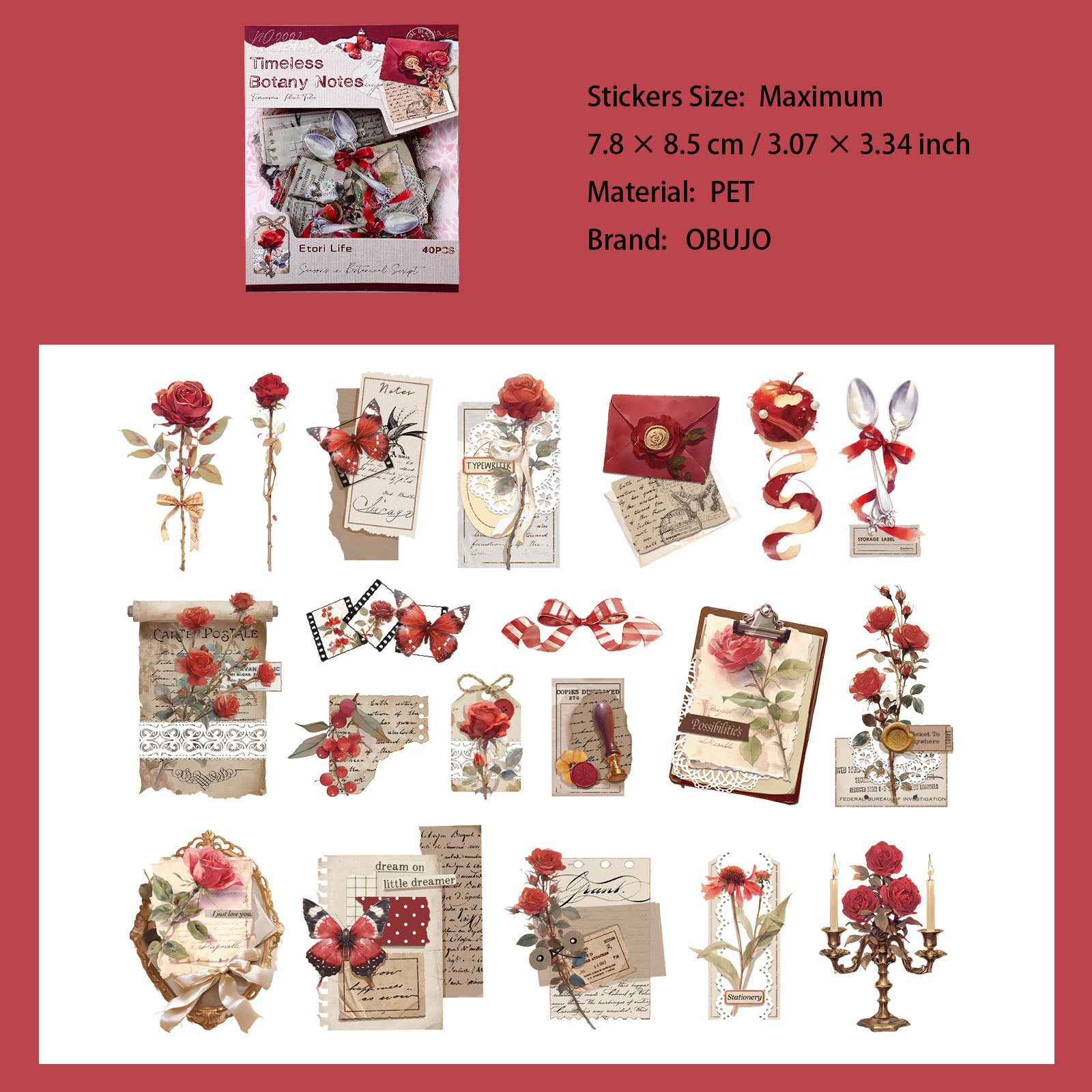 40 Pcs Leaf Flower Collage PET Stickers SGPZ