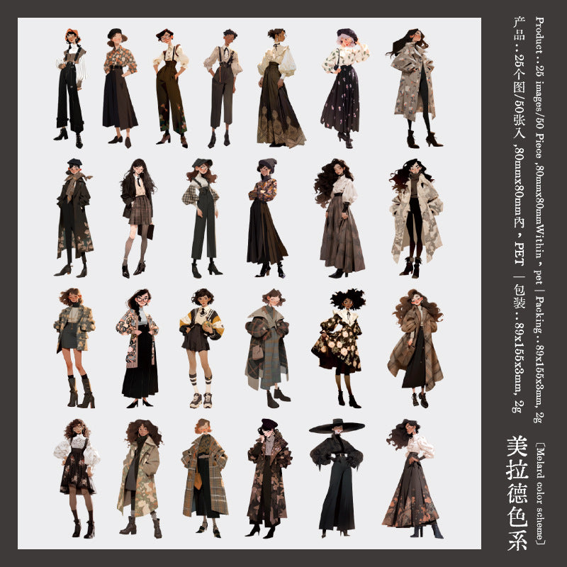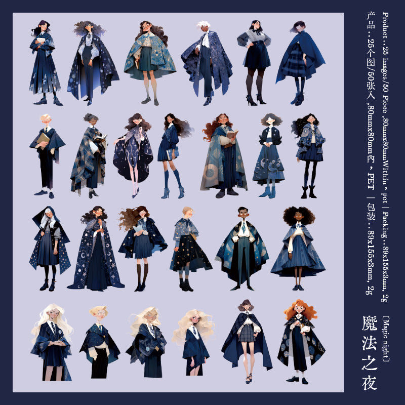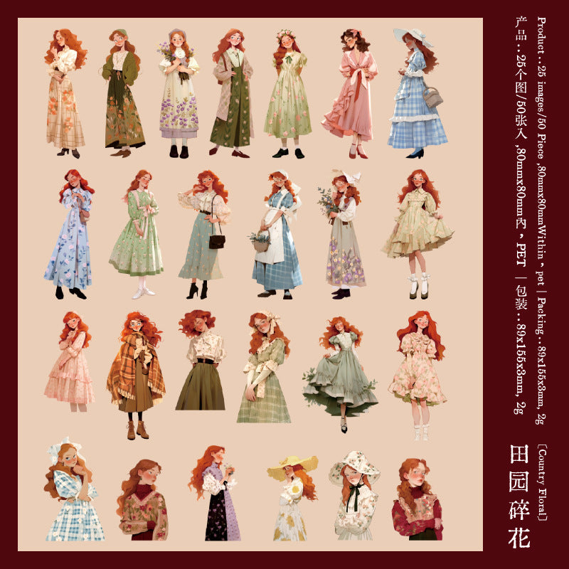 50 Pcs Cartoon Girl PET Stickers WNDY