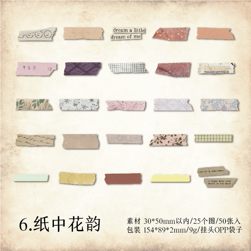 You will get 1 pack of 50 pcs scrapbook supplies from Obujo
