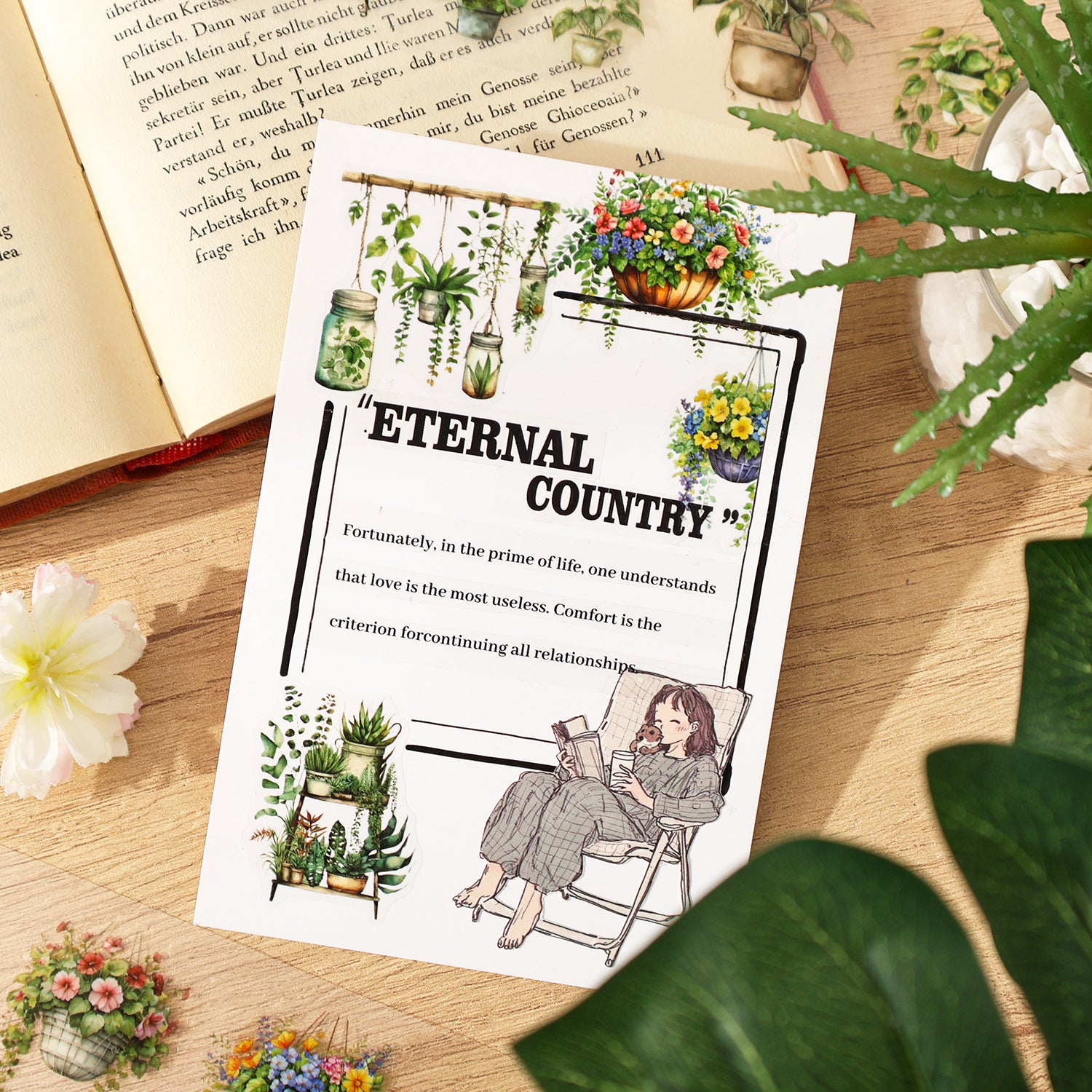 6 Rolls Potted Plants PET Stickers Tapes Set YYCS