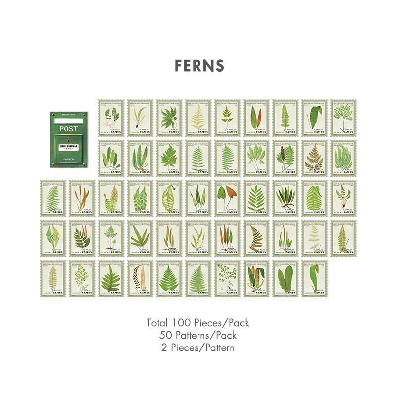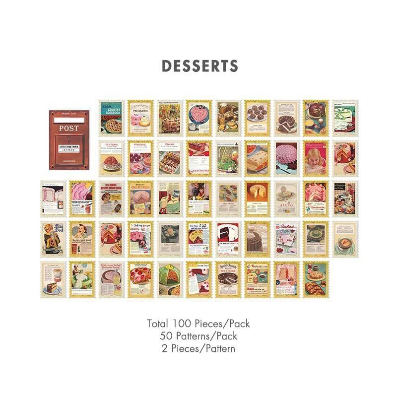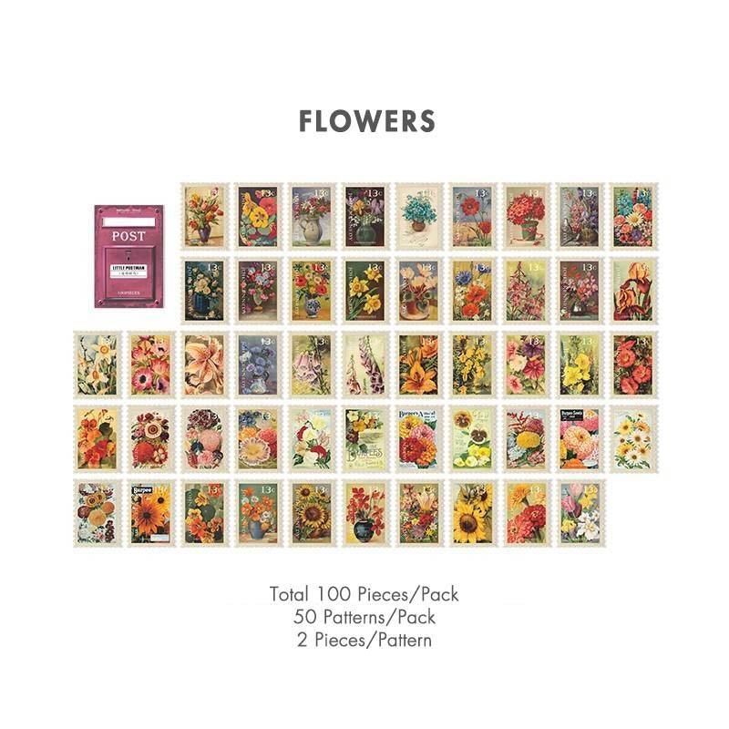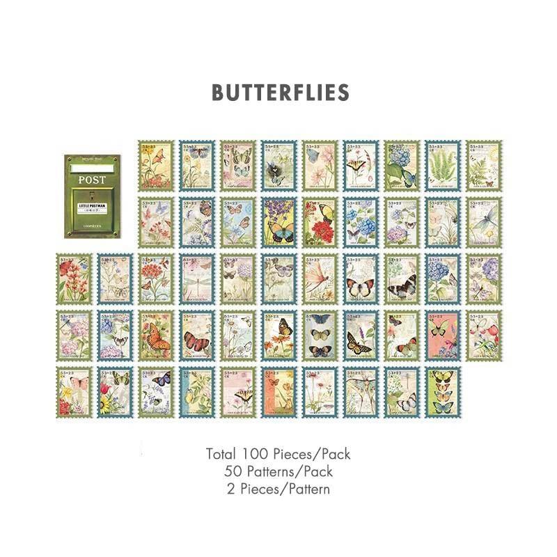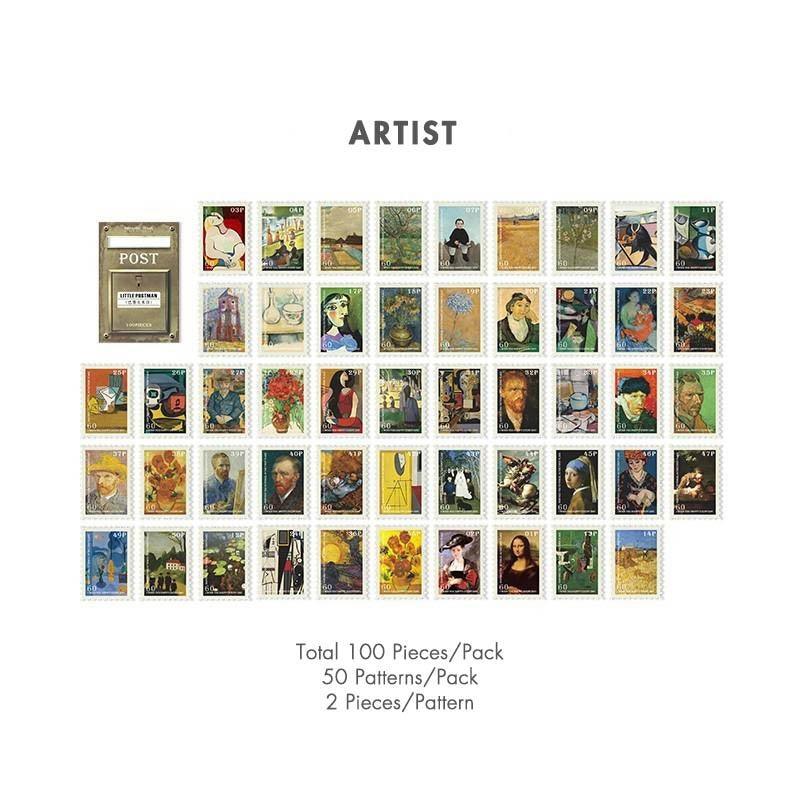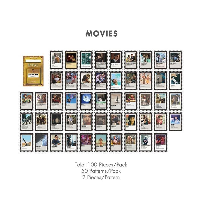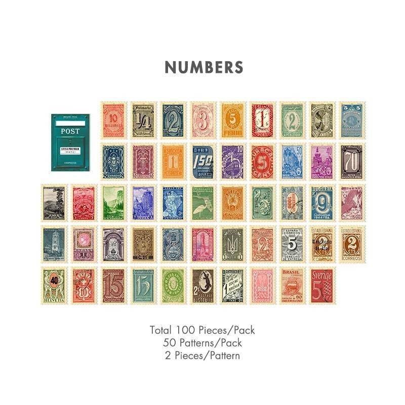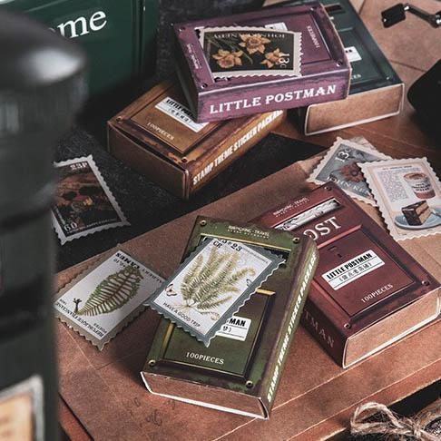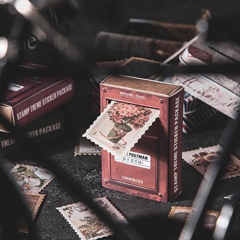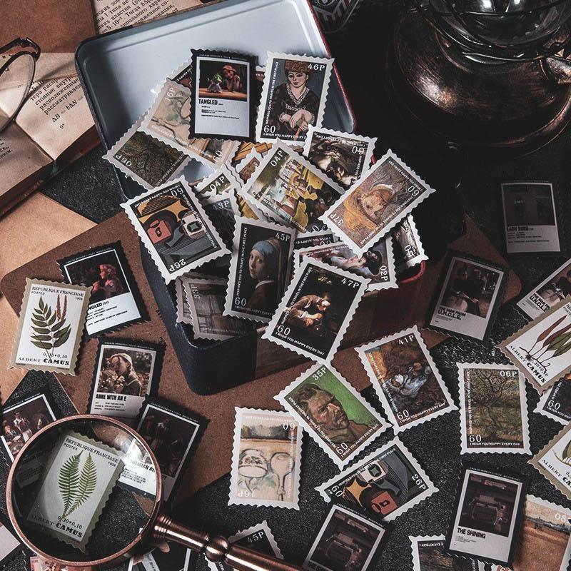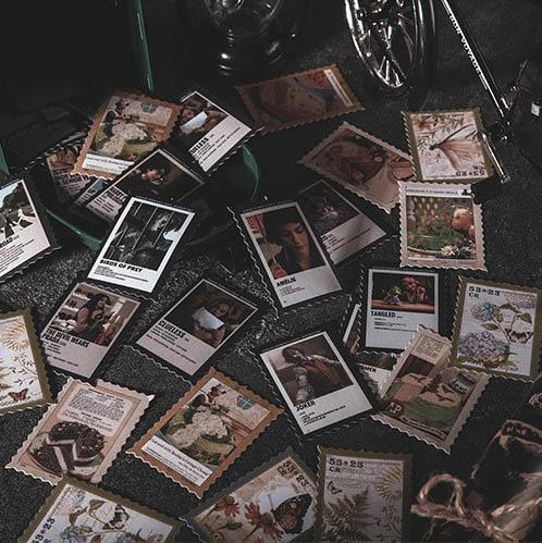 Vintage stamp journal stickers, available in various designs ranging from art to movies and suited for bullet journals. These high-quality stickers are perfect as a complement for scrapbooks, junk journals and bujos.