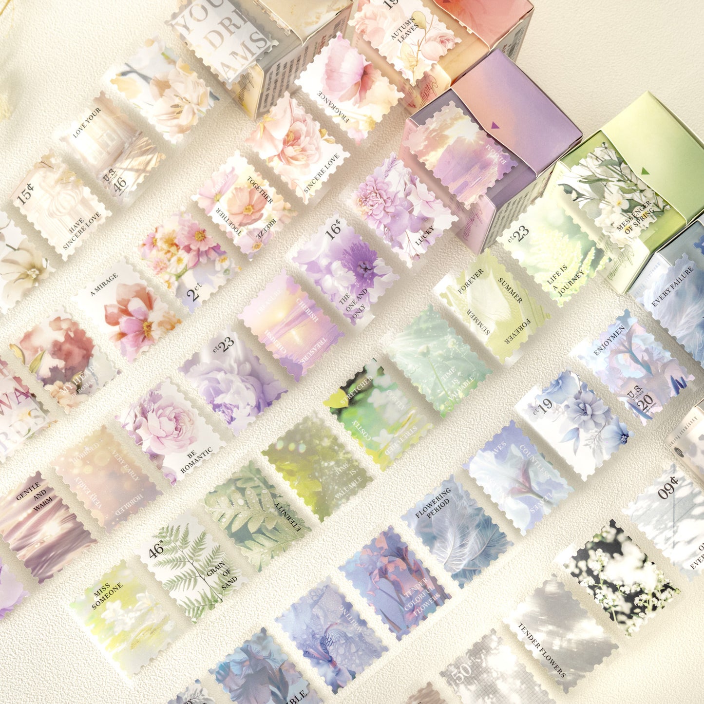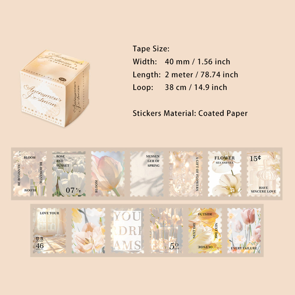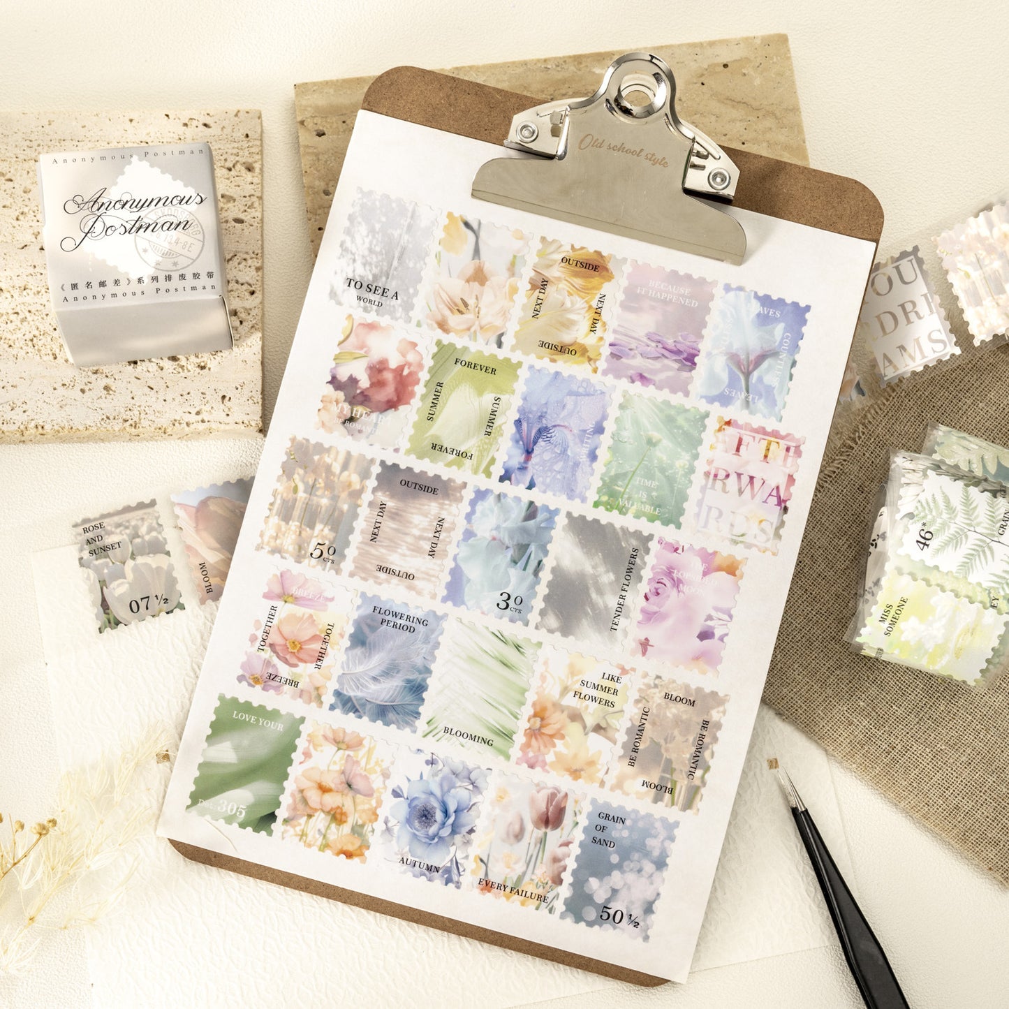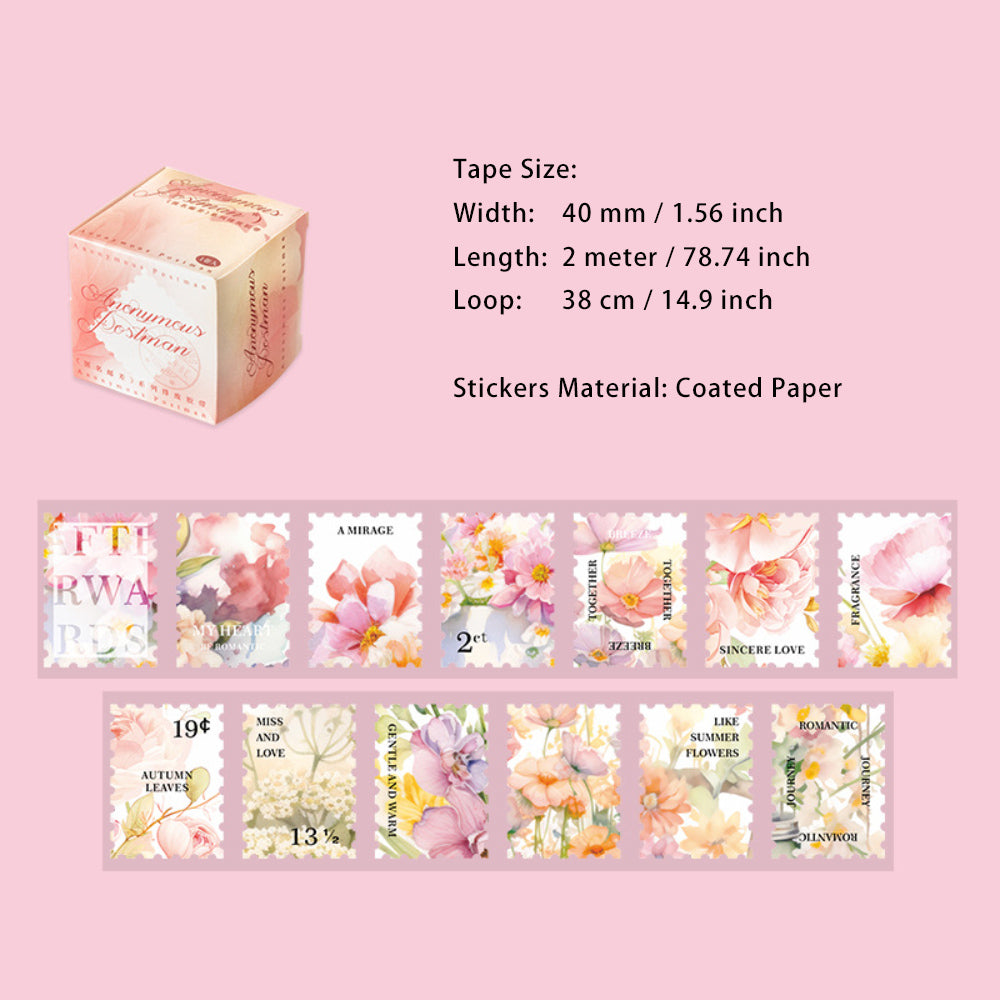 1 Roll Die-cut Flower Post Stamp Stickers Tape NMYC