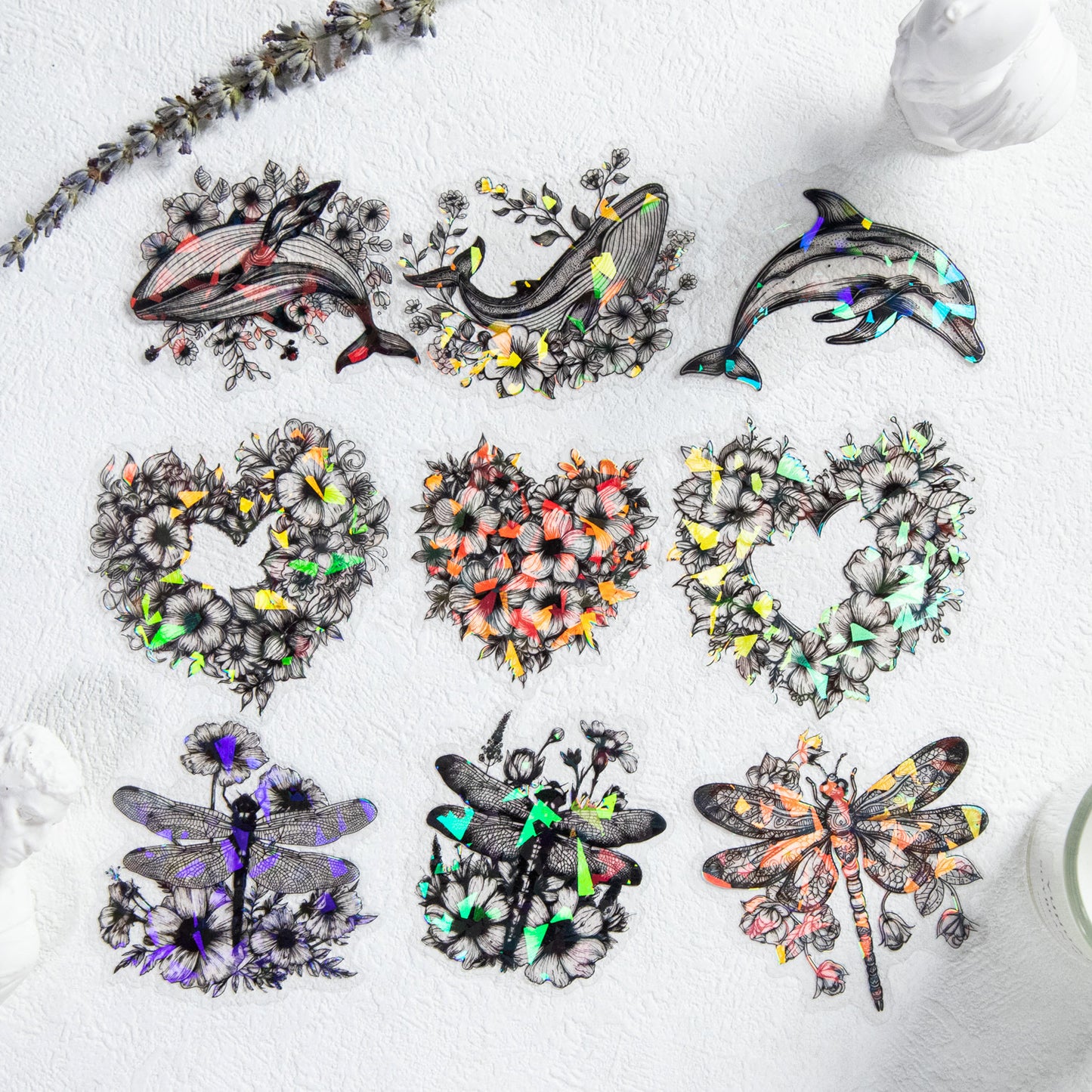 10 Pcs Flowers and Animal PET Stickers NGHY