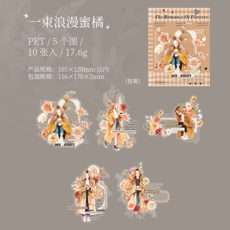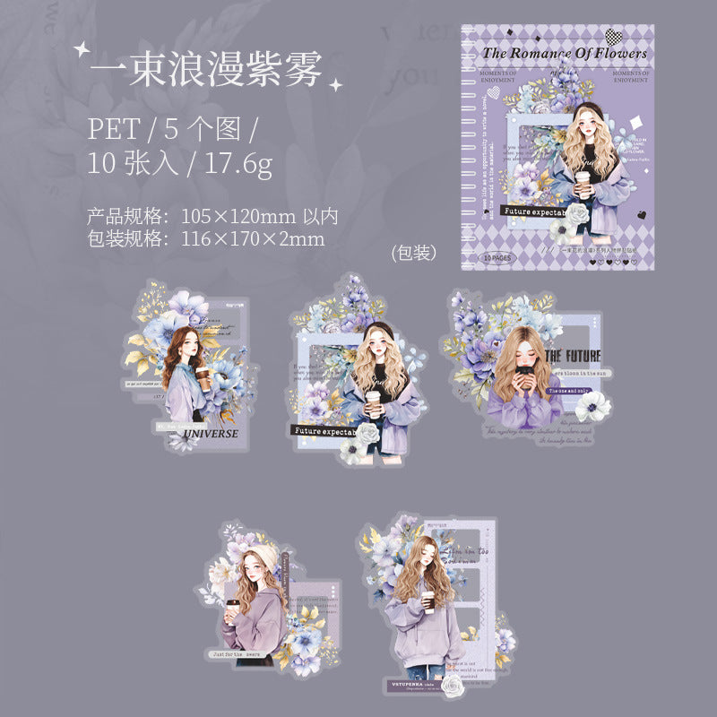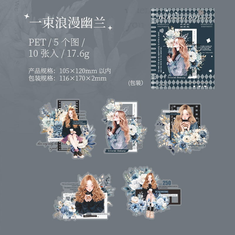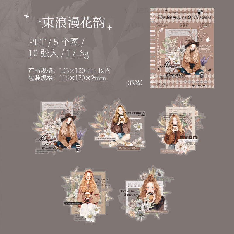 10 Pcs PET Flower and Girl Stickers YSHLM