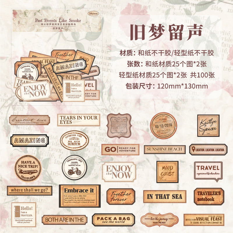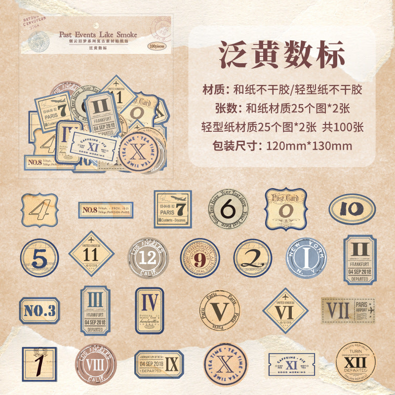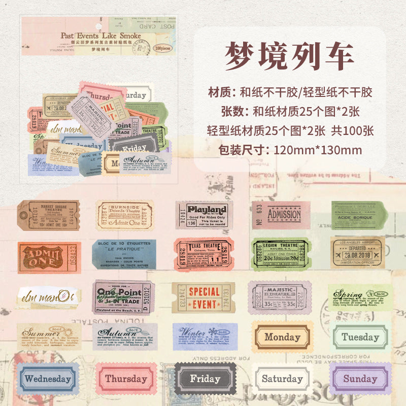 100 Pcs Vintage Jun Journal Stickers YYJM