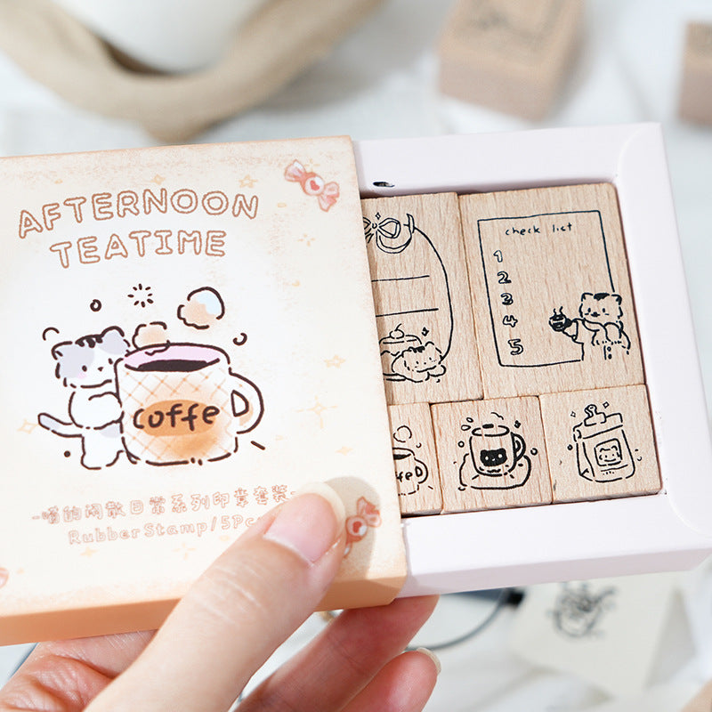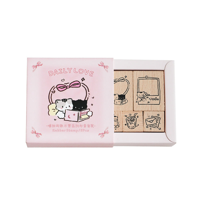 2 Pcs Cat Theme Wooden Stamp Set MXSRC