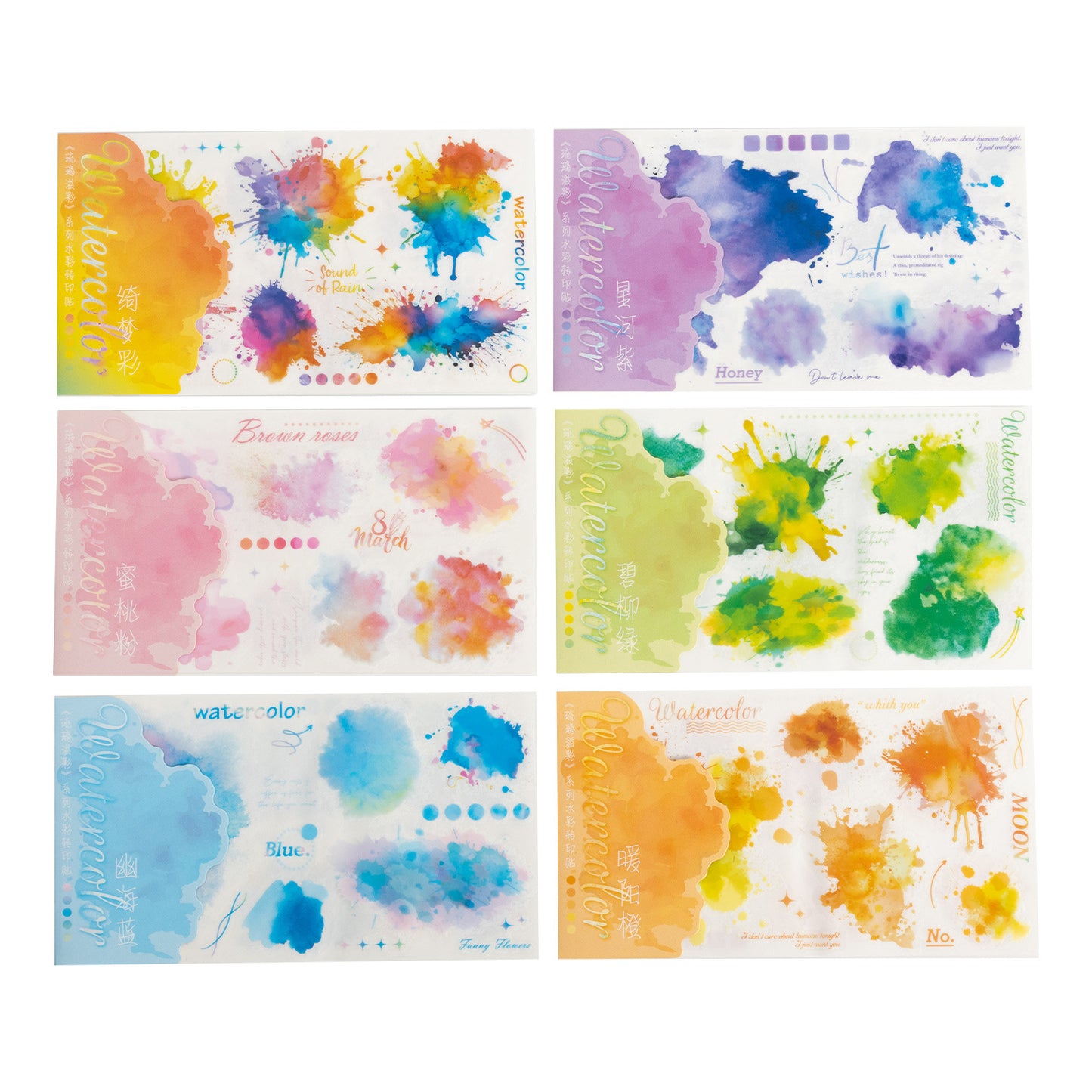 2 Sheets Watercolor Transfer Stickers LLYC