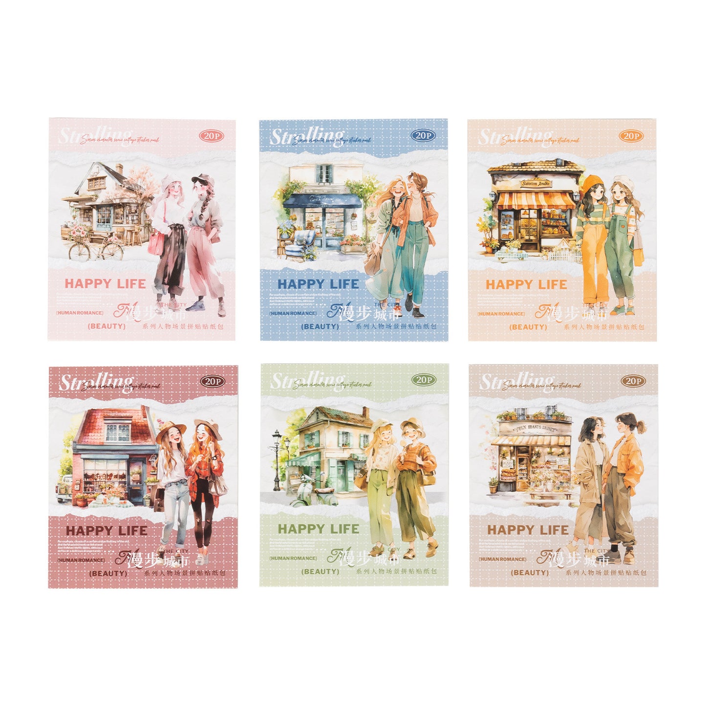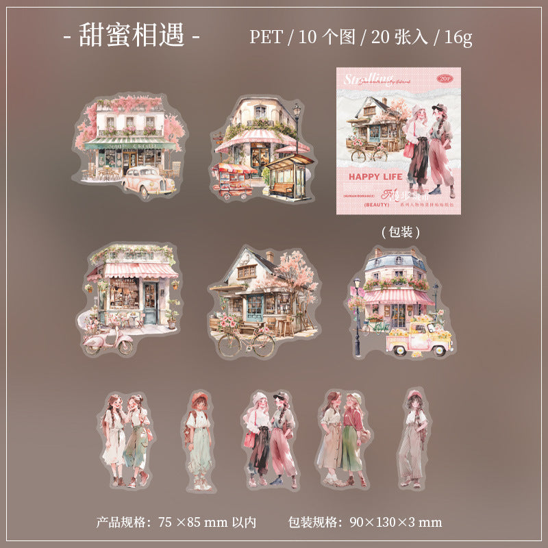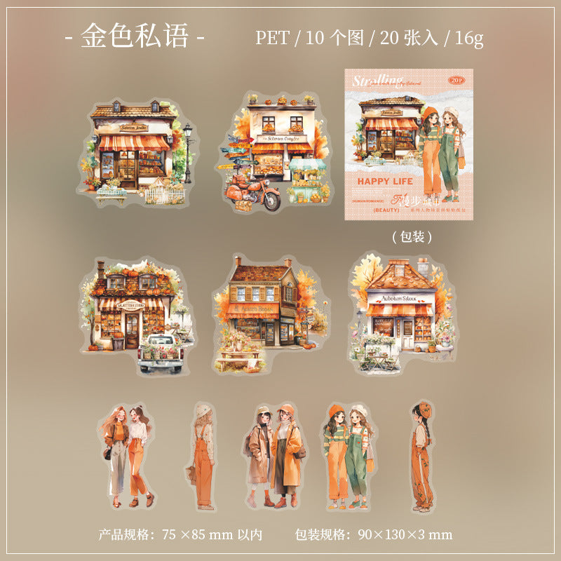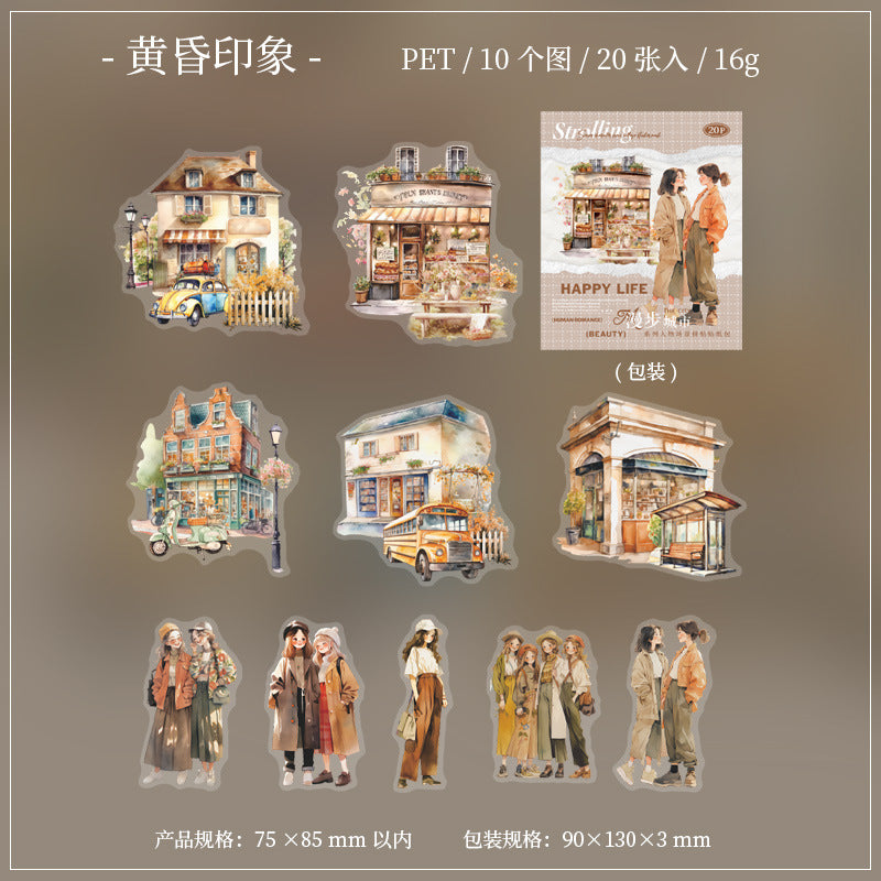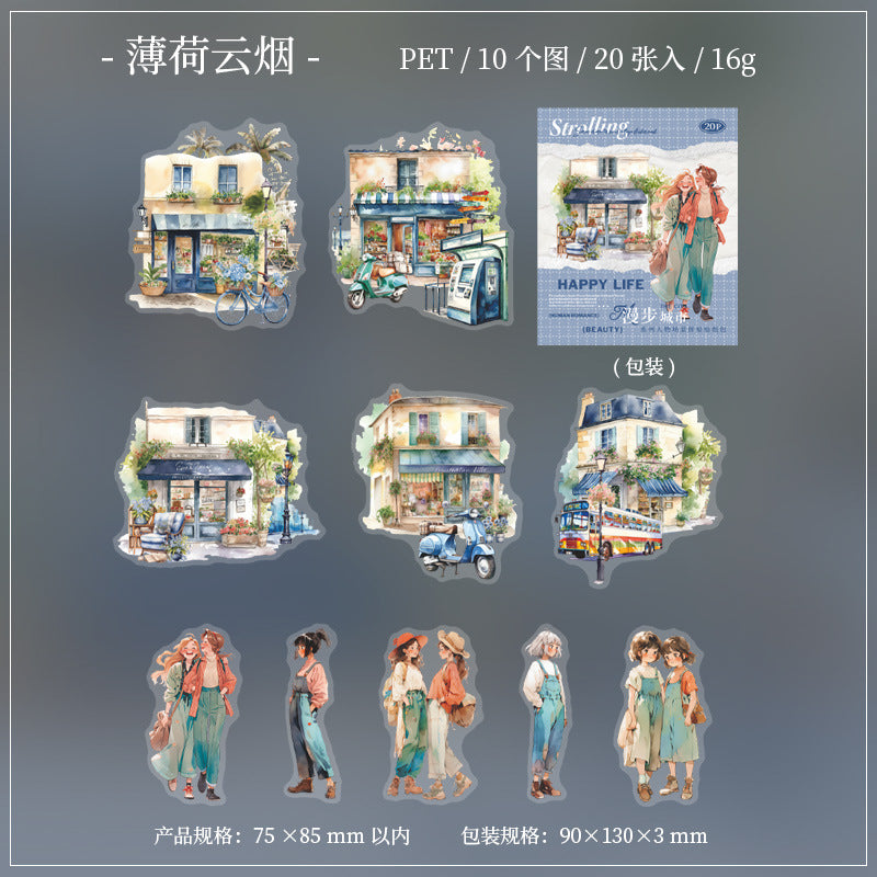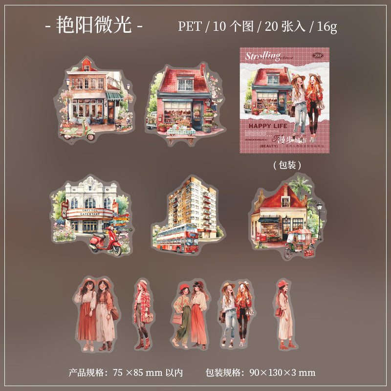 20-Pcs-City-Walking-Girl-PET-Stickers-MBCS