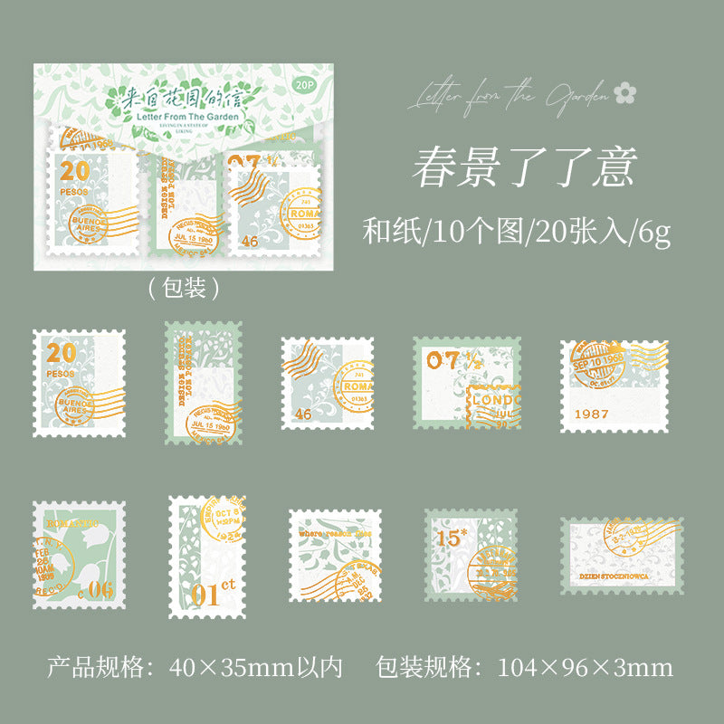 20 Pcs Floral Postage Stamp Stickers LZHY