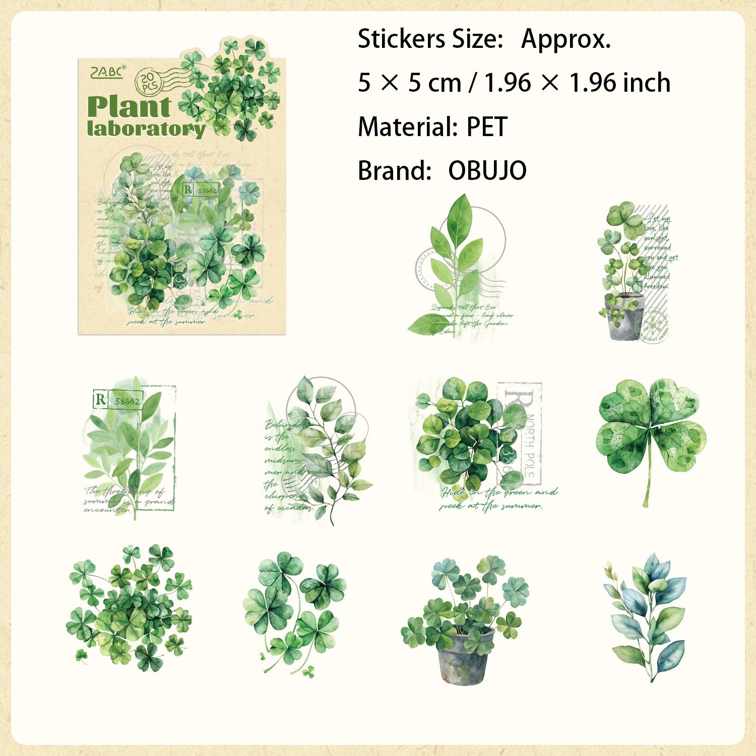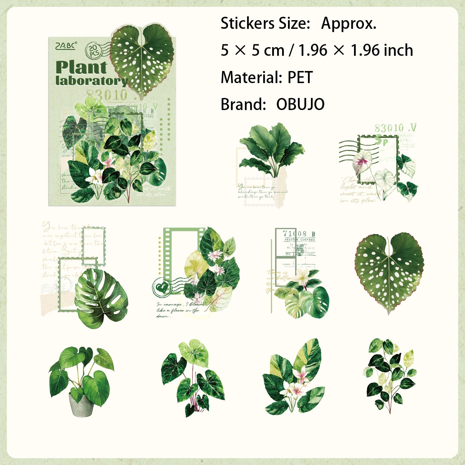 20 Pcs Green Leaf Collage PET Stickers ZWSYS