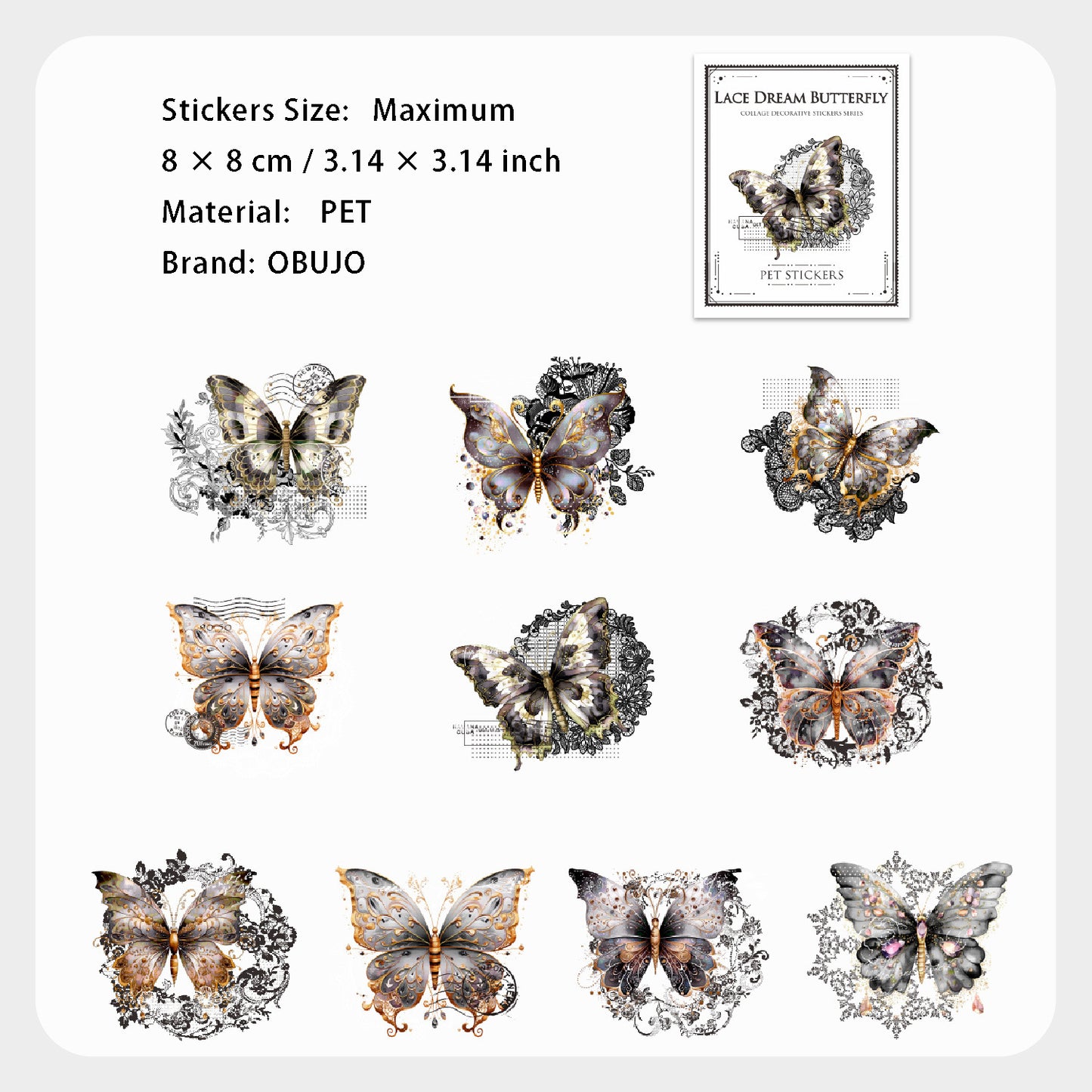 20 Pcs Lace Butterfly PET Stickers LSMD