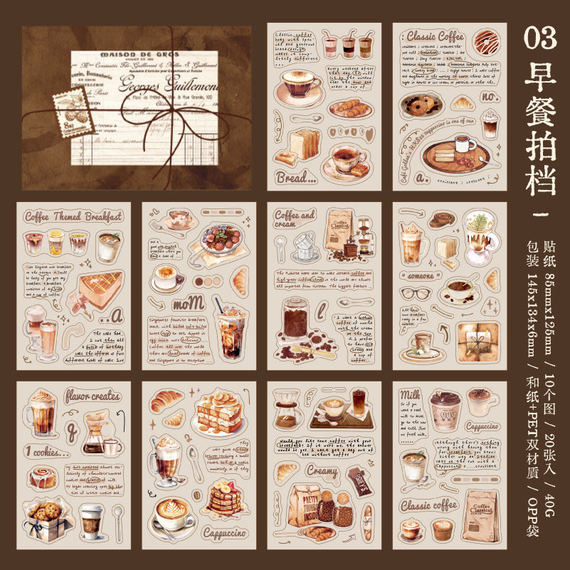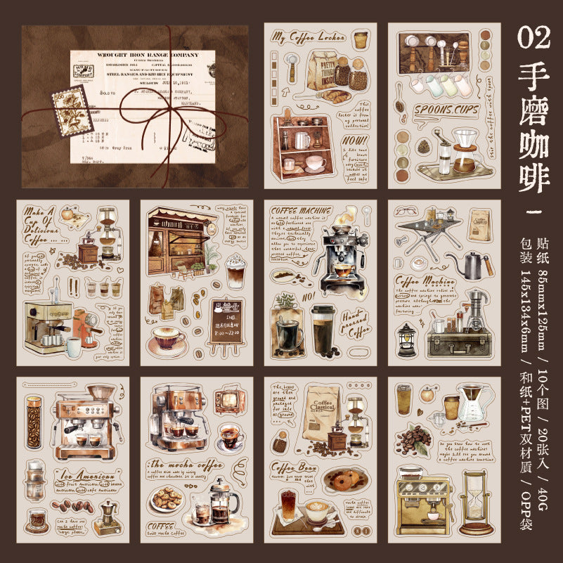 20 Sheets Coffee Themed Washi Stickers and PET Stickers Book KFTY