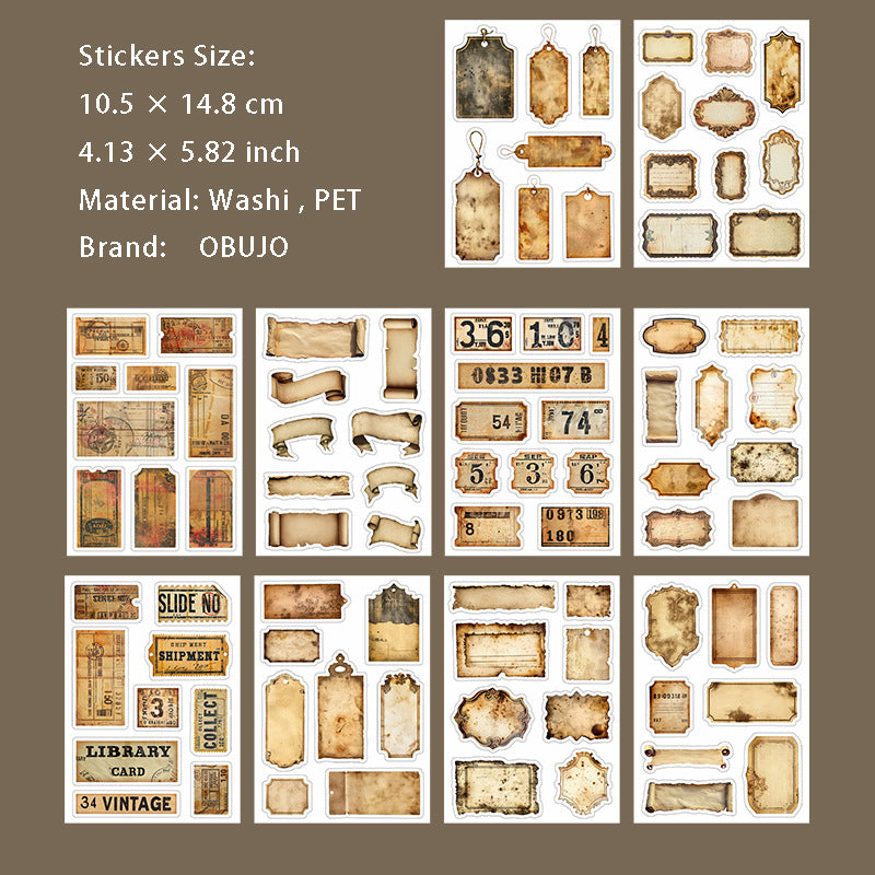 20 Sheets Vintage Journal Stickers Book JWBQJ