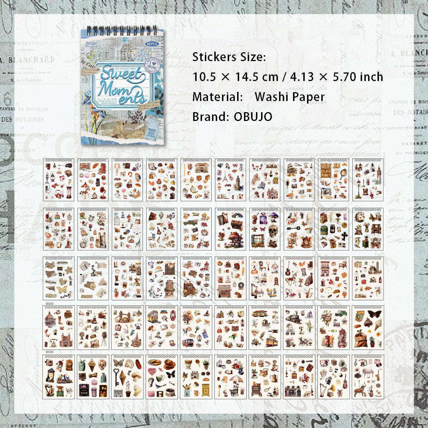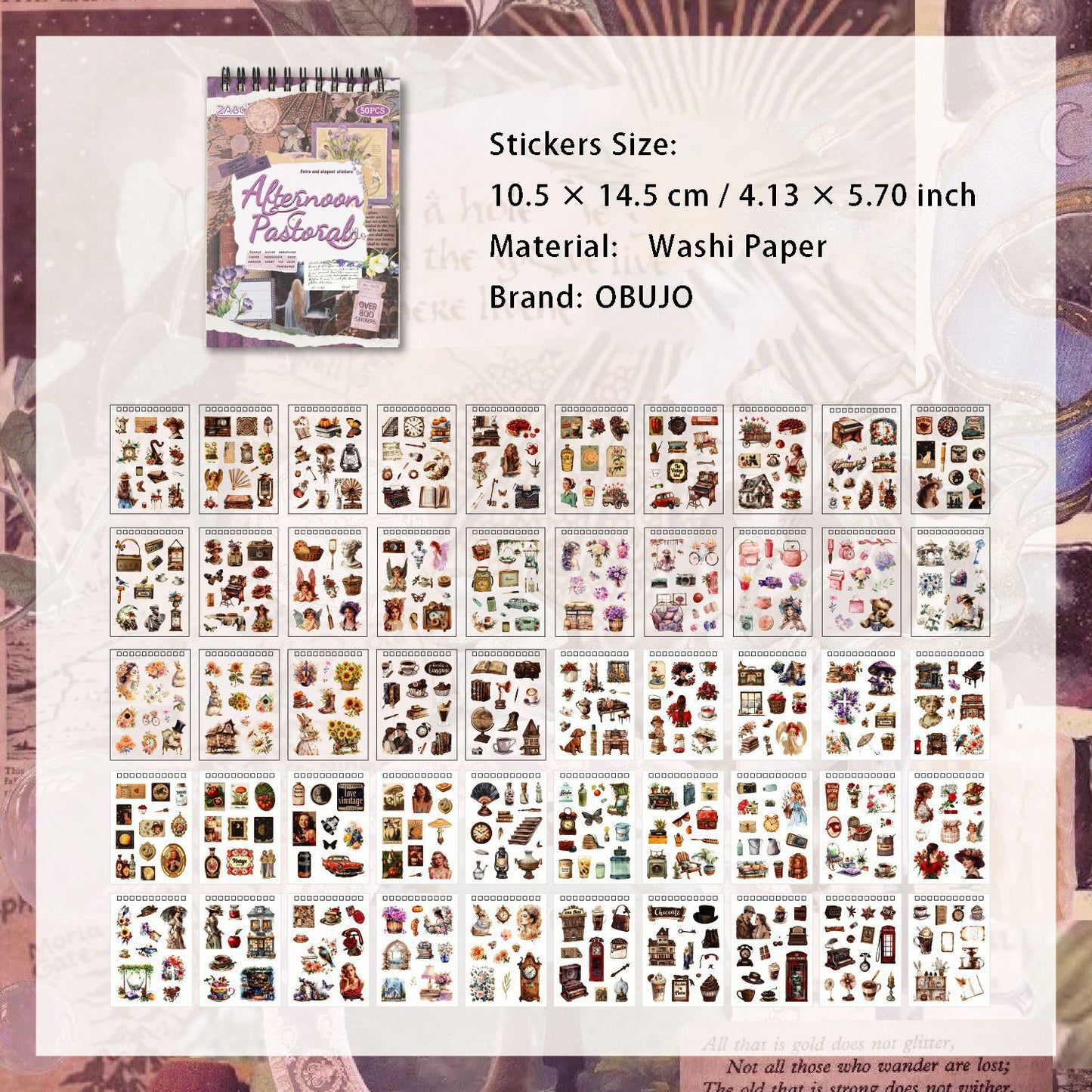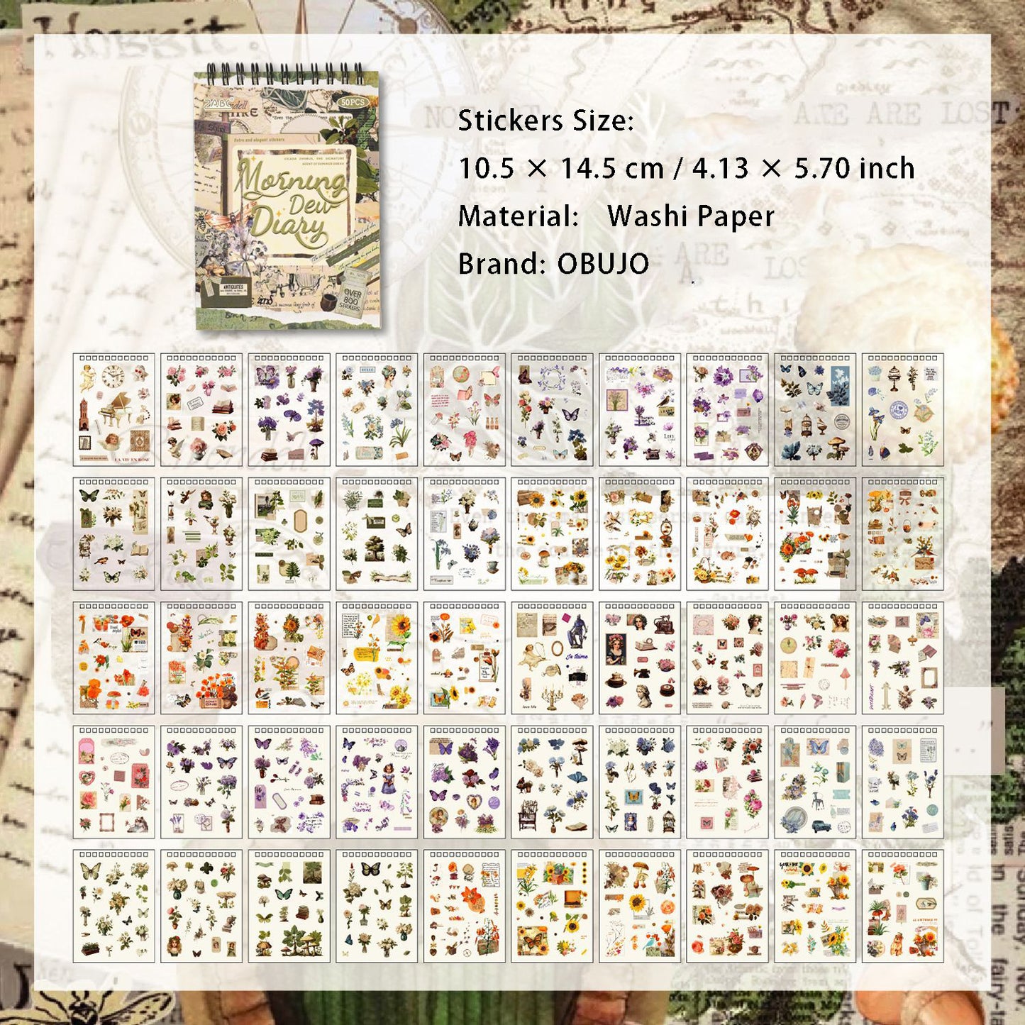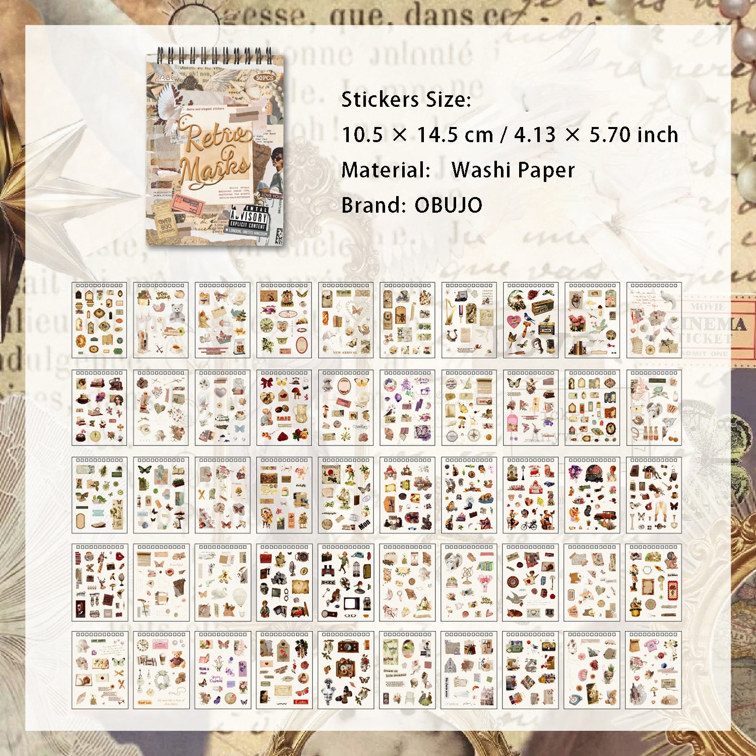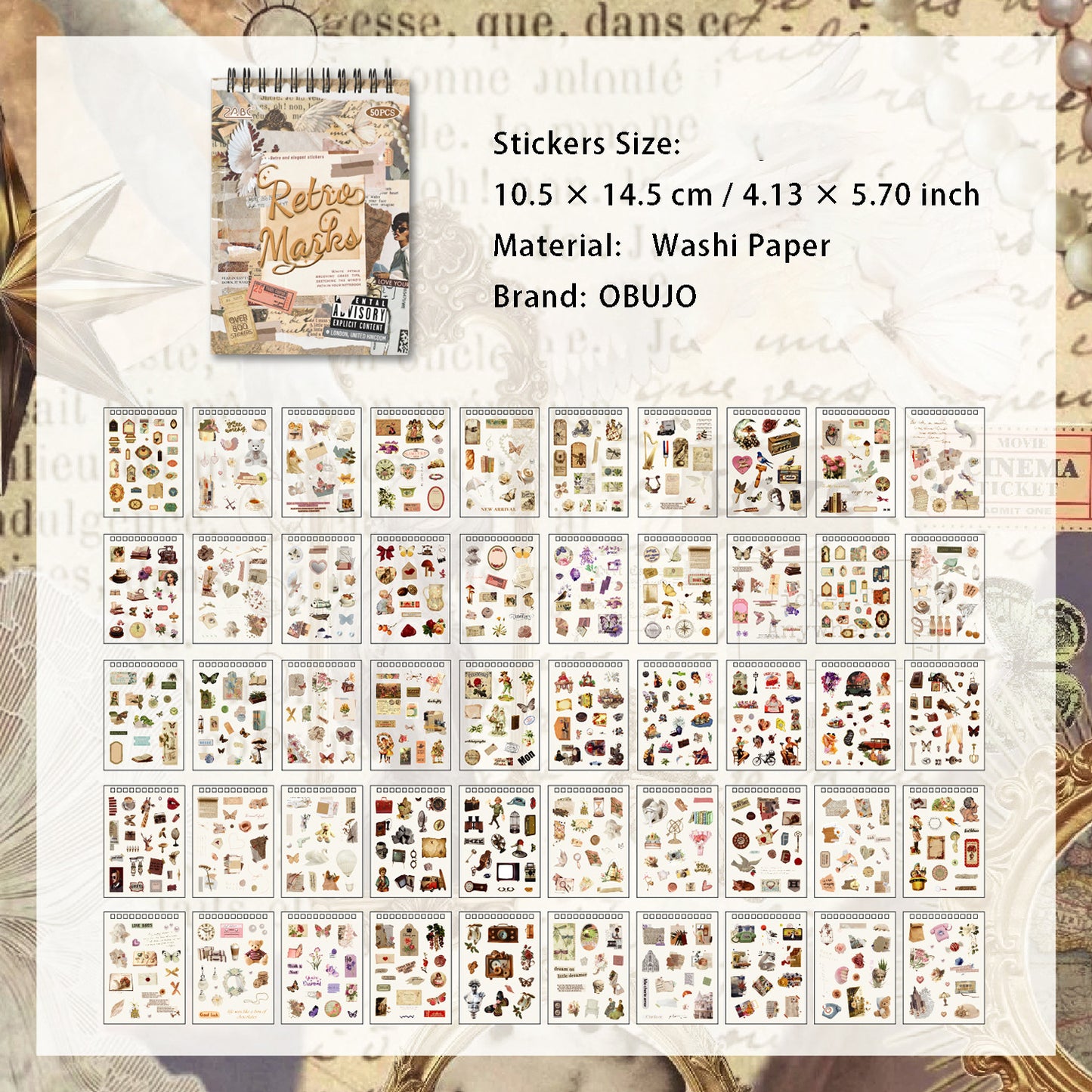 25 Sheets Vintage Journal Stickers Book GDSZ