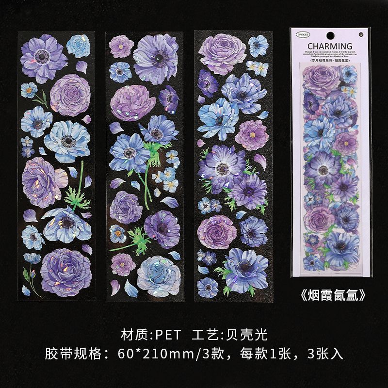 3 Pcs Flowers PET Stickers SYFH