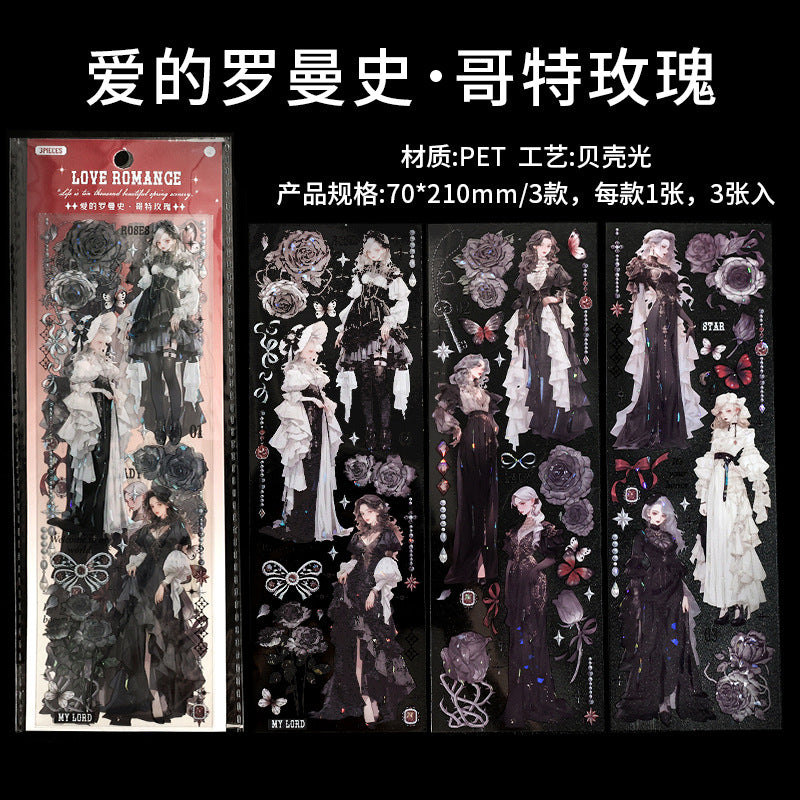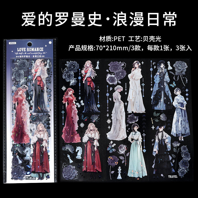 3 Sheets Love Romance Girl PET Stickers ADLMS