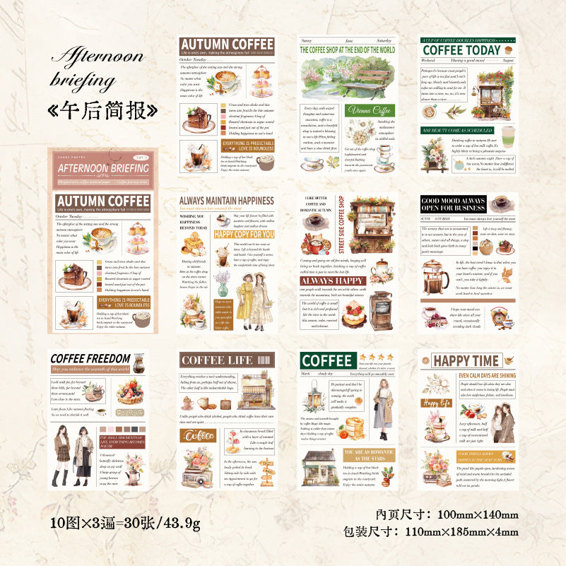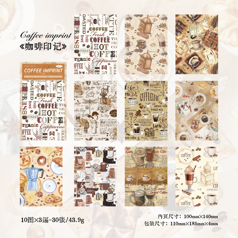 30 Pcs Coffe Theme Junk Journal Paper KFZL