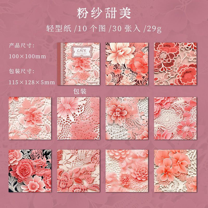 30 Pcs Lace Theme Scrapbook Paper HBLS