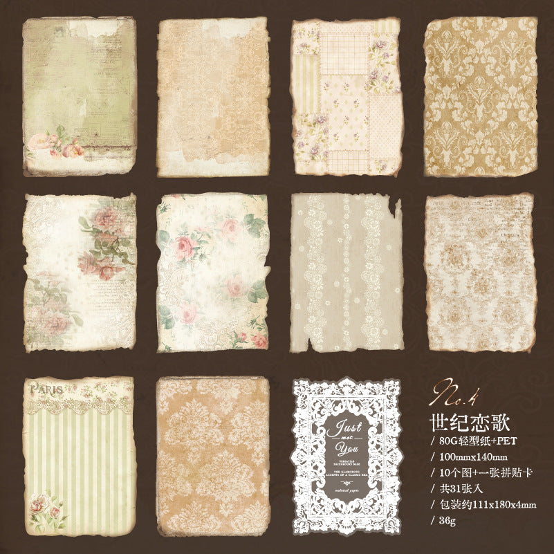 31 Pcs Vintage Floral Scrapbook Paper GHYJN