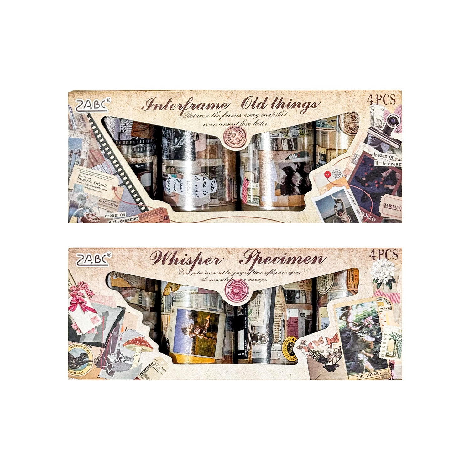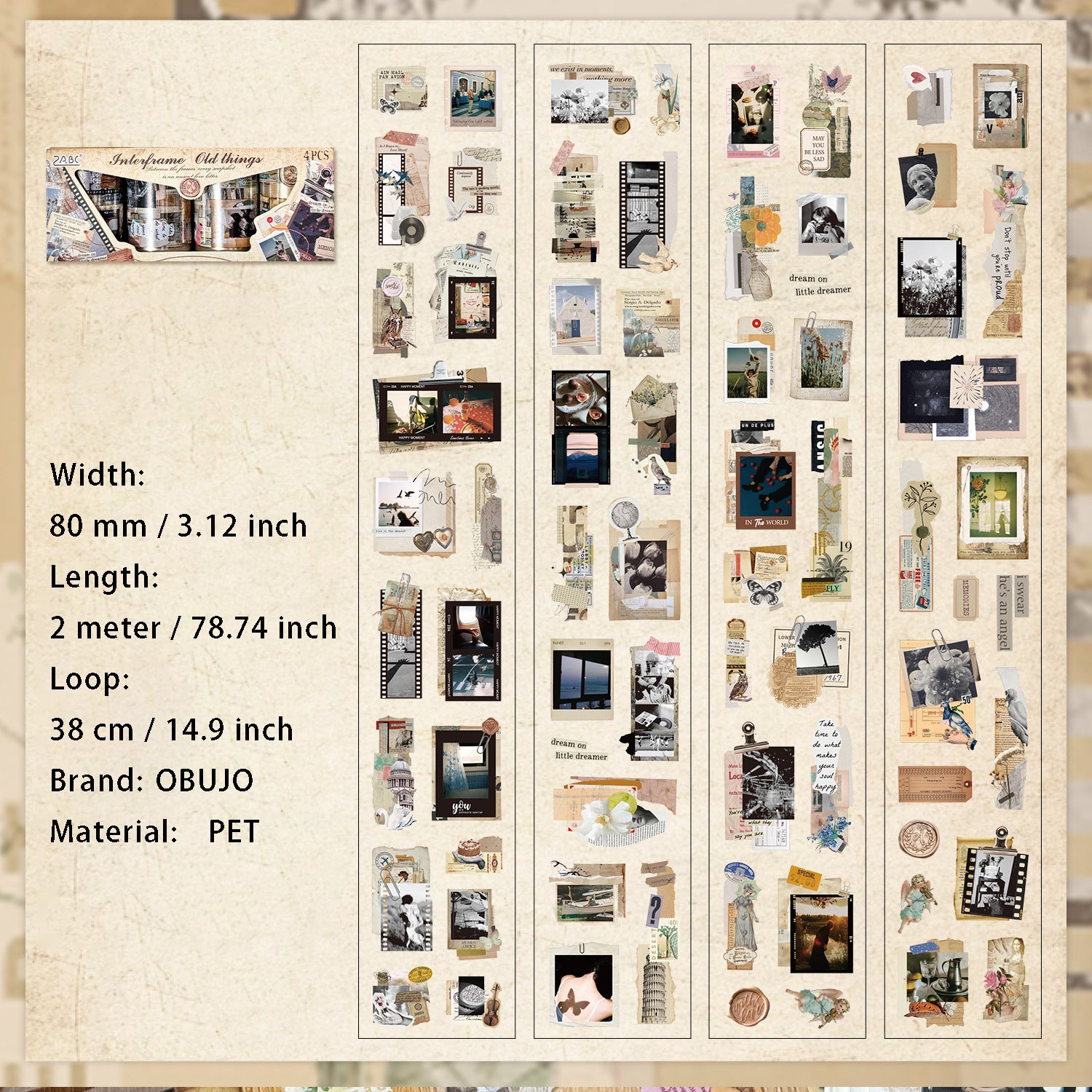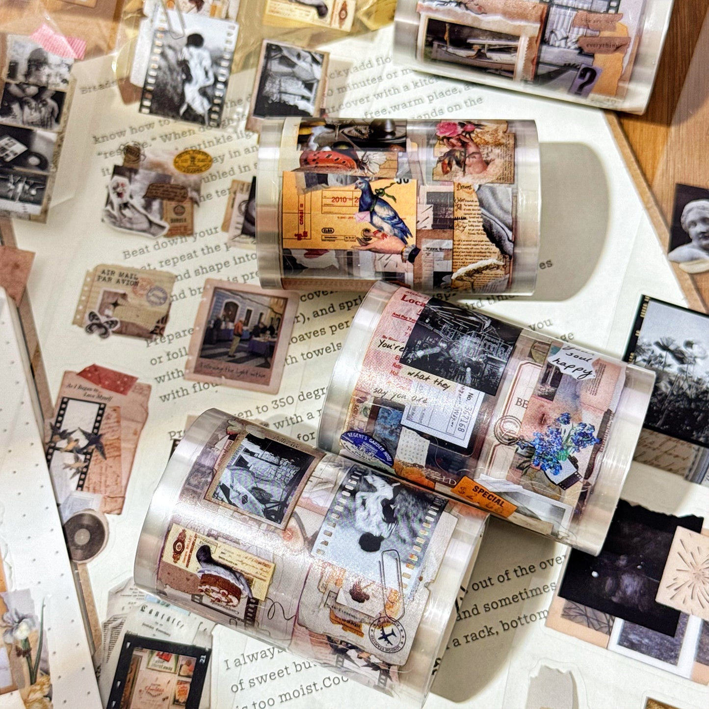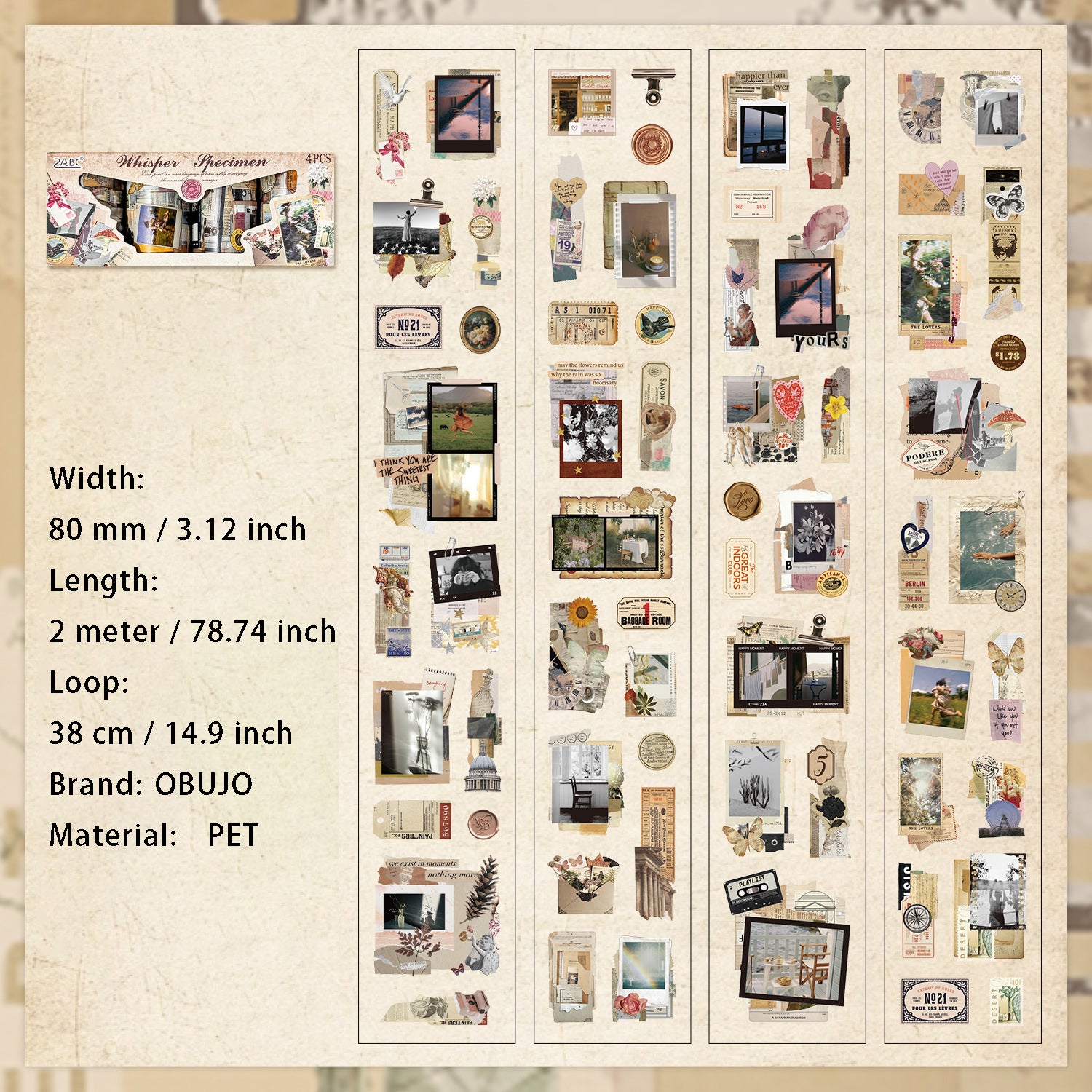 4 Rolls Vintage PET Stickers Tapes Set FTJY