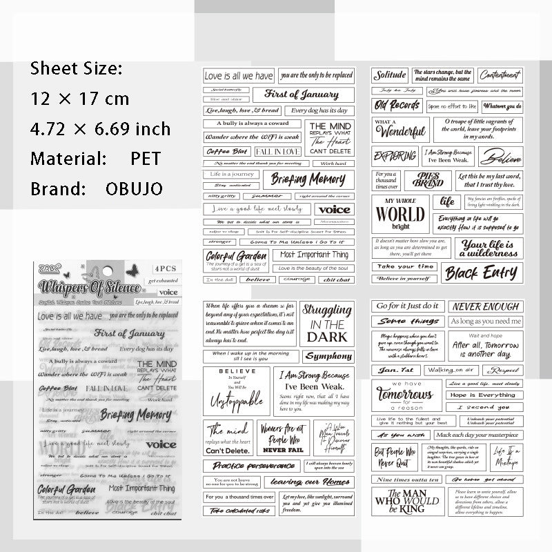Package Includes: 1 Pack of 4 sheets stickers with 4 patterns