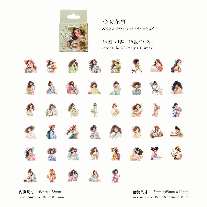 You will get 1 pack of 45 pcs scrapbook supplies from Obujo