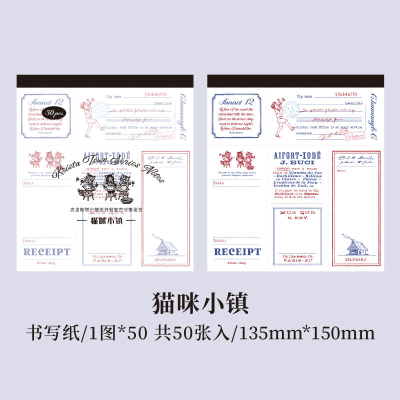 50 Pcs Vintage Notepad Paper KLSTXZ