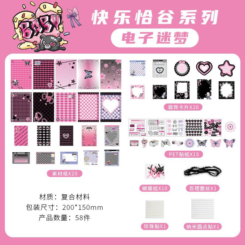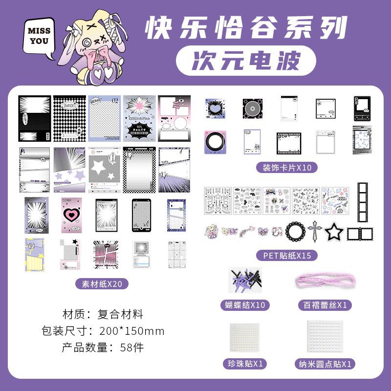 You will get 1 pack of 58 pcs scrapbook supplies from Obujo