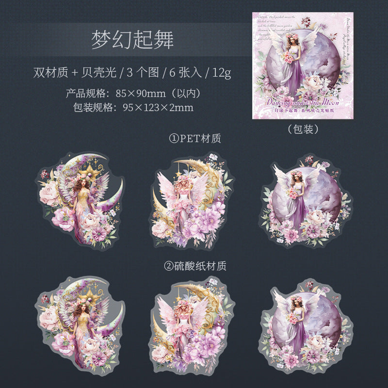 6 Pcs Moon Fairy Tale PET Stickers YQXQW