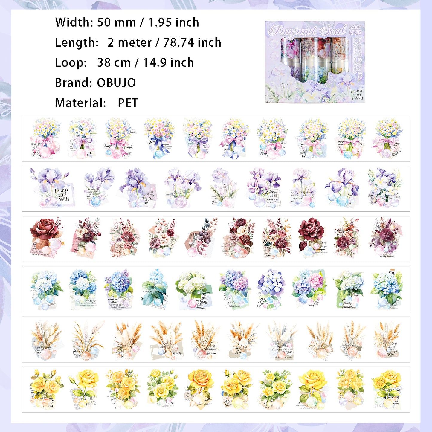 6 Rolls Flower PET Stickers Tape YHQS