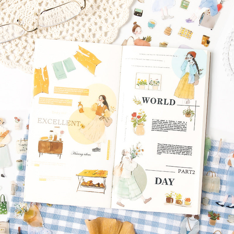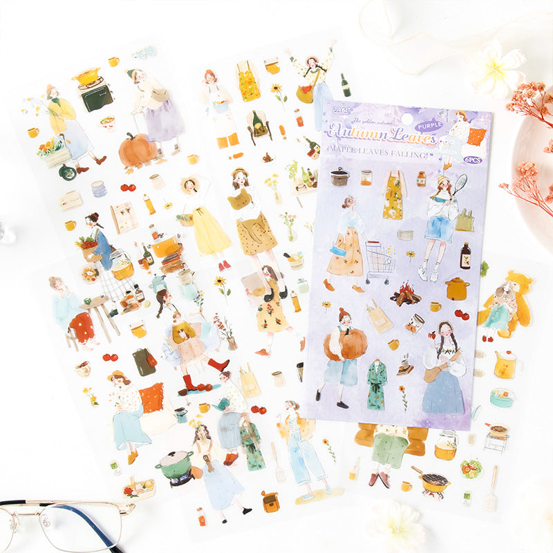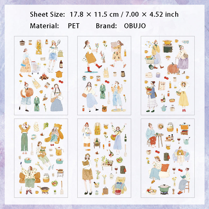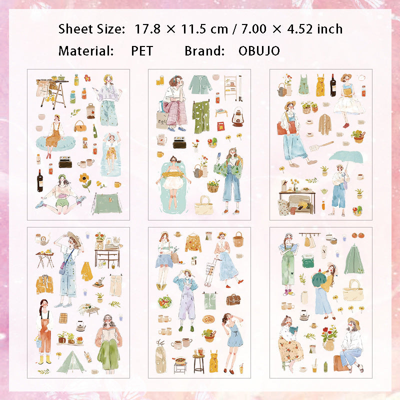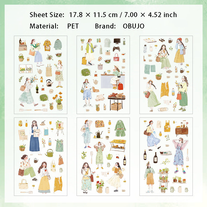 6 Sheets Seasonal Girl PET Stickers BFSG